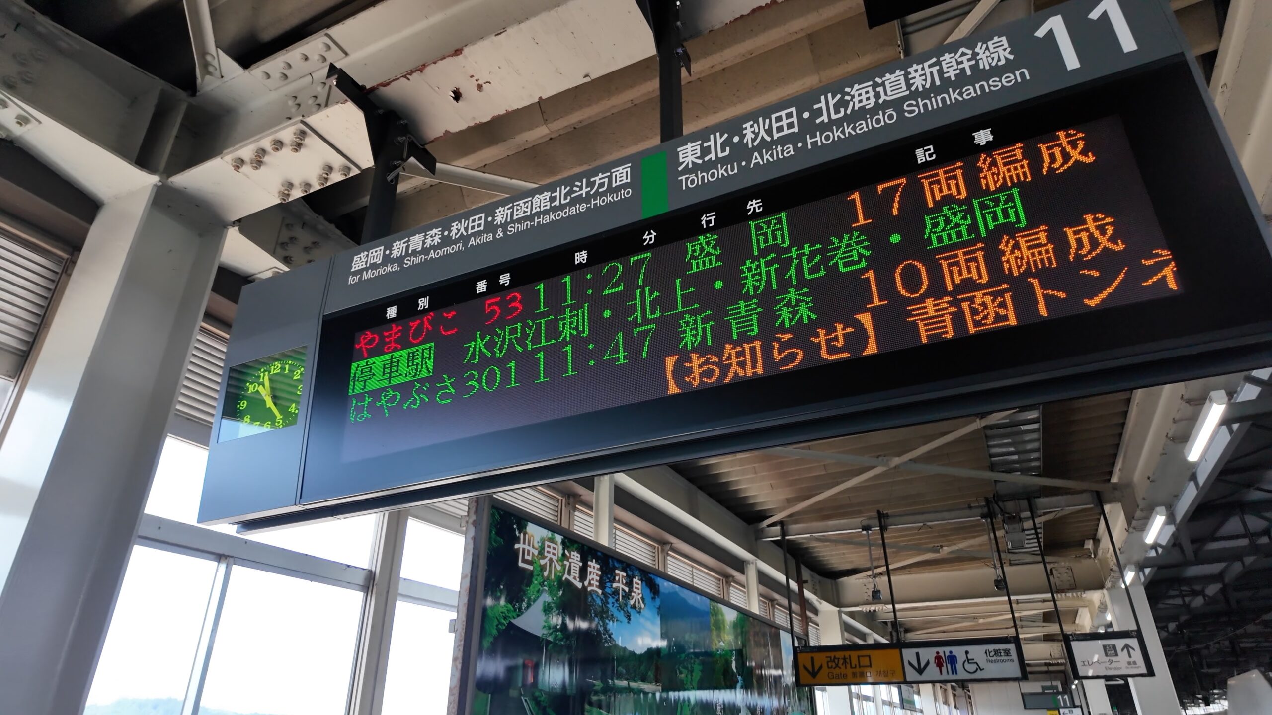 今回は東北本線でここから少し北上します。事前にどの程度新幹線駅で降りて、在来線に乗り換える人がいるのかなと思っていたのですが、思ったよりいてびっくりです。皆さん私と同じように観光客風の感じでしたので、目的地が同じなのかもしれないなと思いました。