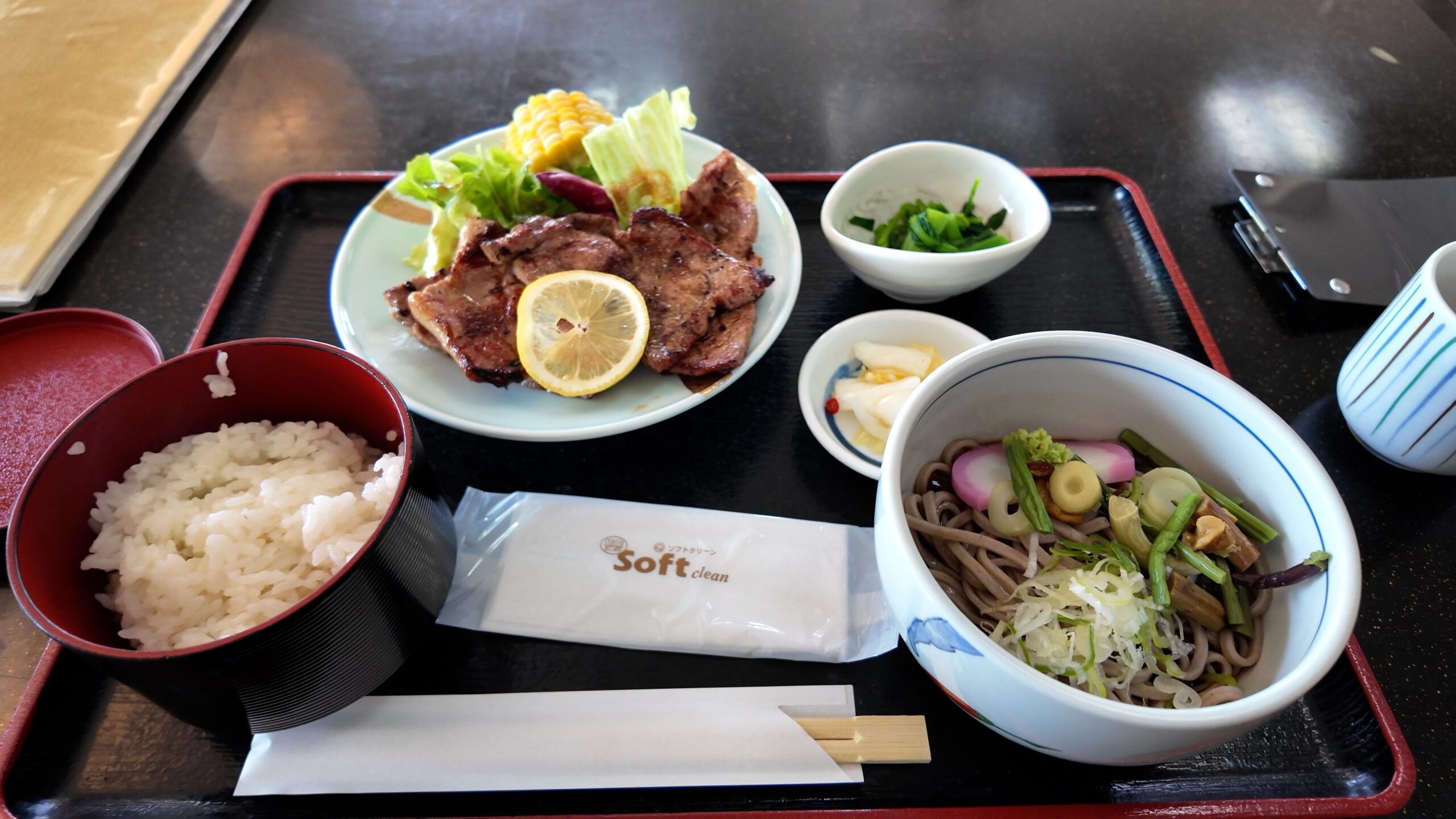 「白金豚味噌漬焼きと蕎麦のセットを税込1518円で注文して、出て来たのがこちらです。