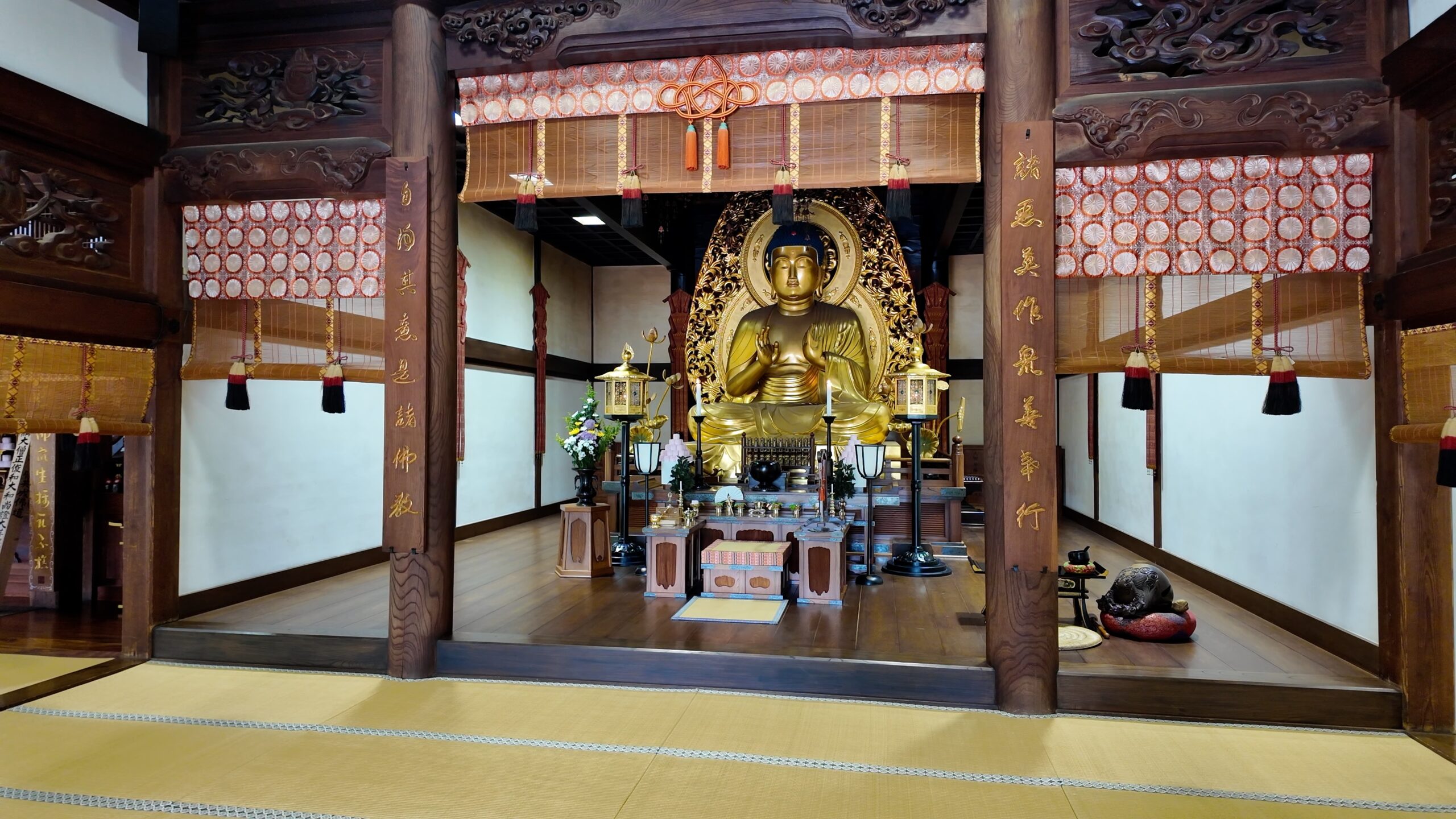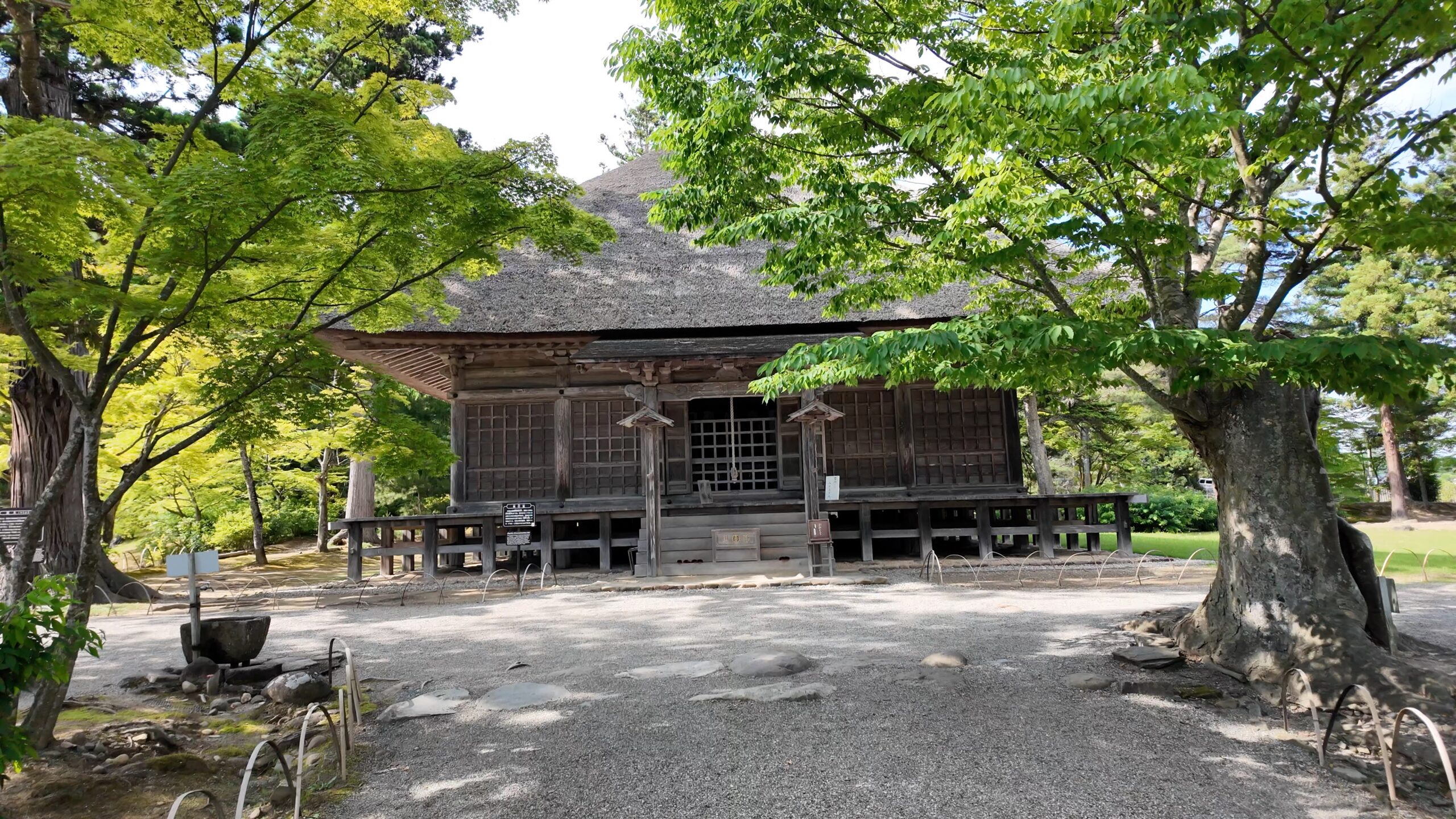 そのままの流れで常行堂にやって来ました。こちらのお堂の中央には、ご本尊である宝冠阿弥陀如来坐像が安置されています。こちらも重要文化財です。毛越寺の常行堂は、「江戸時代に再建された、常行三昧という念仏修行のための専門道場」です。庭園の美しさが際立つ毛越寺の中で、この常行堂は、今もなお厳しい修行や重要な法要が行われる「生きた信仰の場」としての役割を担っています。