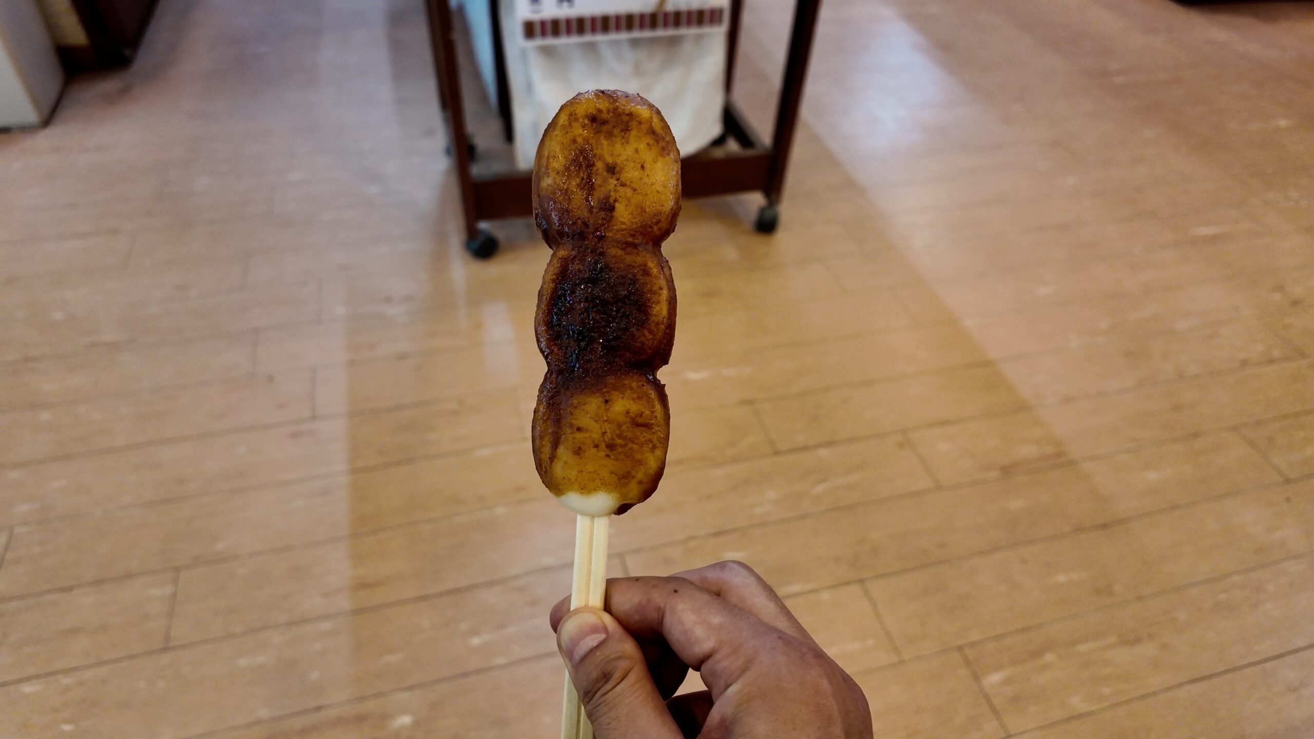 一通りの見学を終えて中尊寺を後にする前に、お土産屋さんがありそこで弁慶餅を売っていたので休憩兼ねて食べて見ました。1本300円です。とても素朴な味で美味しかったです。