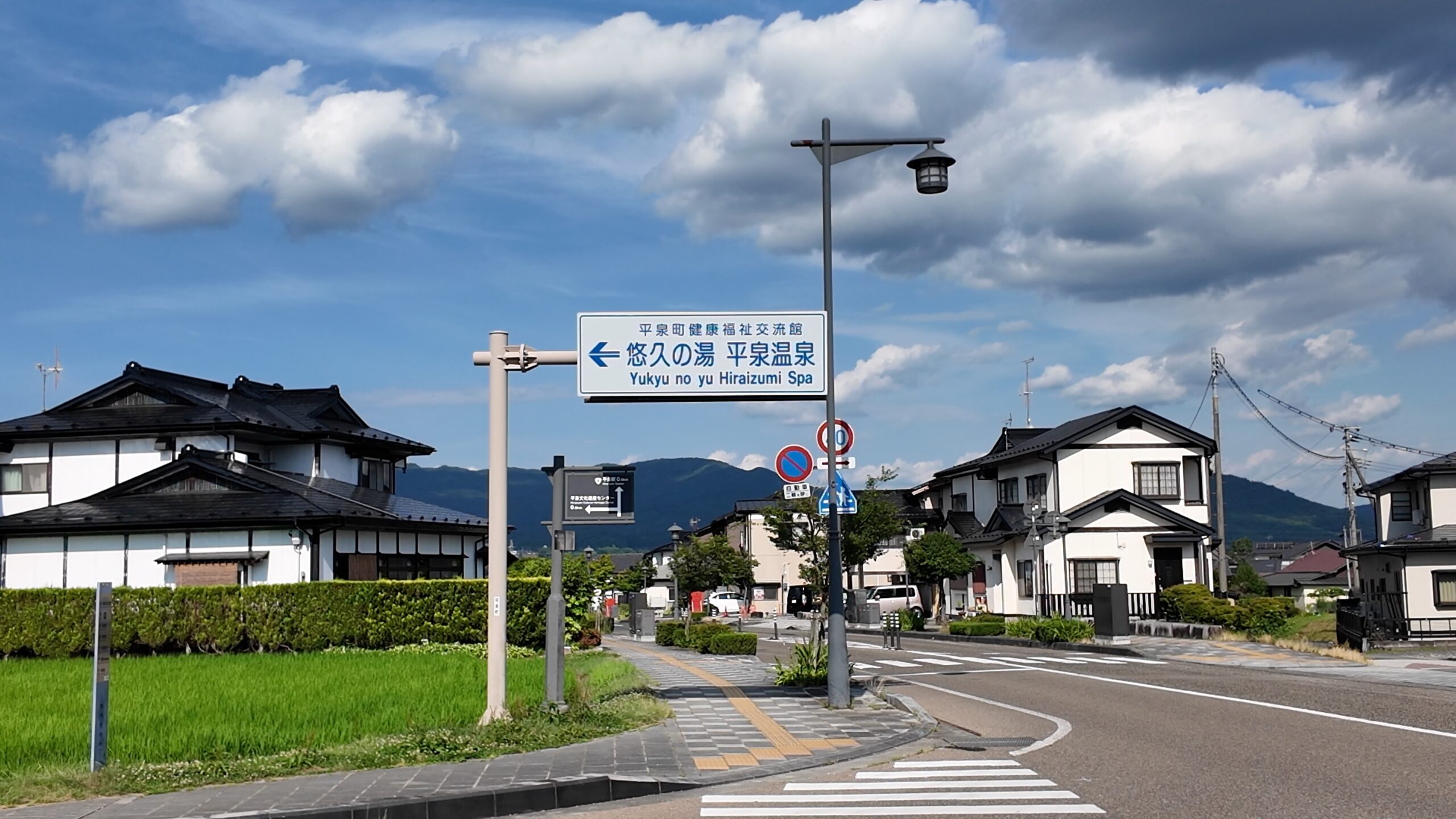 毛越寺の見学後は日帰り温泉に行ってみる事にしました。案内に沿って歩いて行きます。