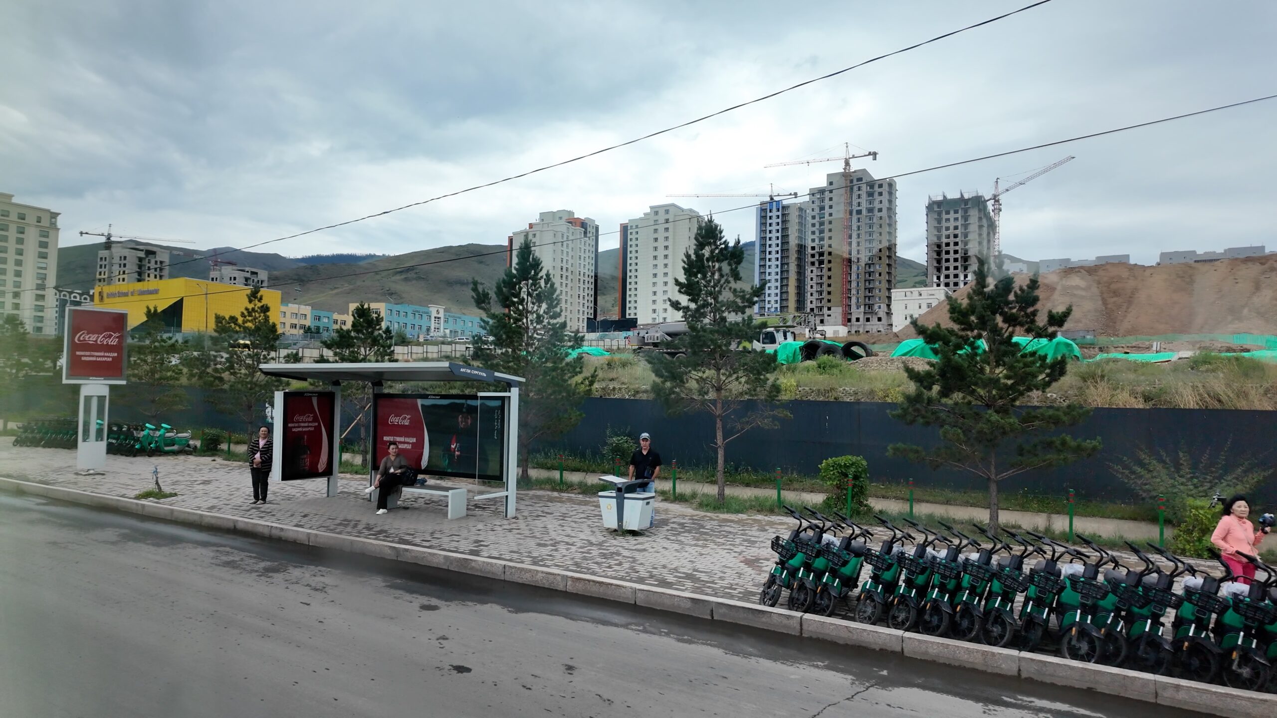 バスは私が行きたかった、スフバートル広場が終点のようで結果的に最後までの乗車となりました。市内に入ってから渋滞でノロノロ運転となり、結局空港出発してから2時間以上経過しての到着となりました。急ぐ旅では無かったので良いのですが、逆に帰りは少し考えないとダメだなと思いました。正直こんなに時間がかかるとは全くの想定外でしたが、その分、バス車内でゆっくり体を休める事が出来たし、スマホの充電も完全に出来たので、一旦は前向きに考える事にしました。これからの観光では重要ですしね。