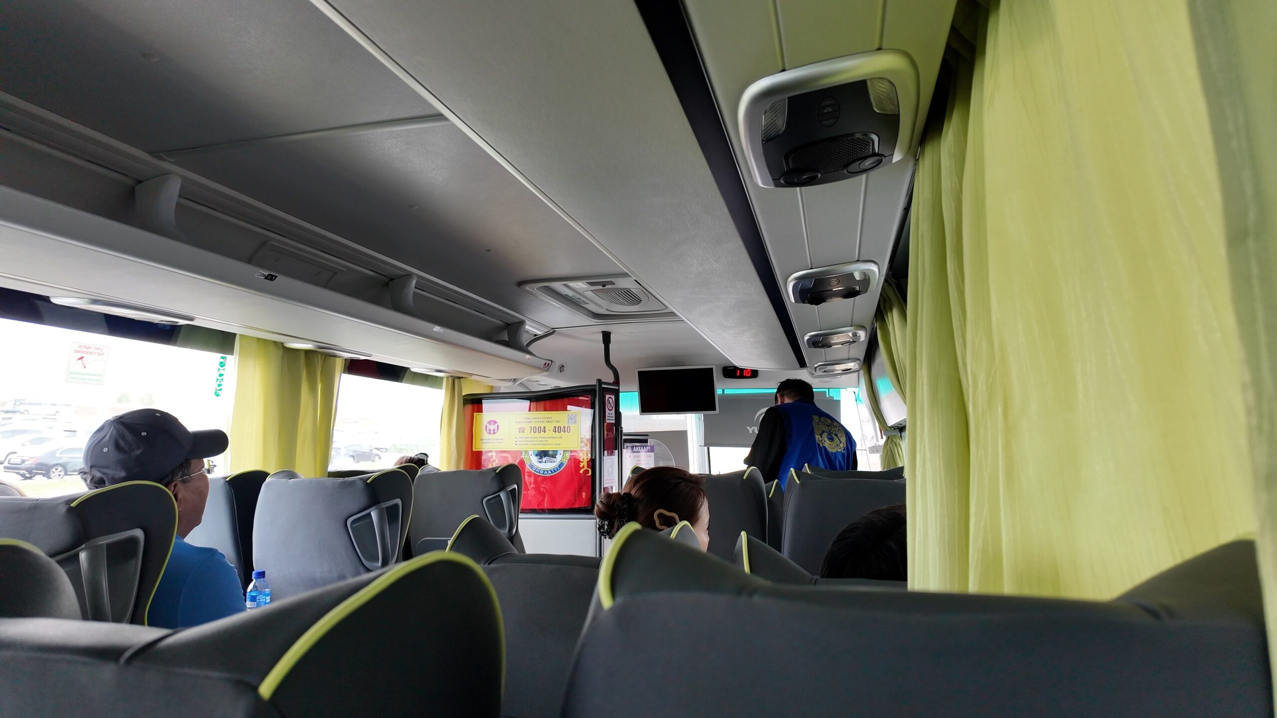 車内はとても綺麗で快適な空間でした。路線バスという情報だったので、日本の「路線バス」のようなものを想定していましたが、日本でいう羽田空港リムジンバスのような観光バスで、快適に目的地まで過ごせそうです。