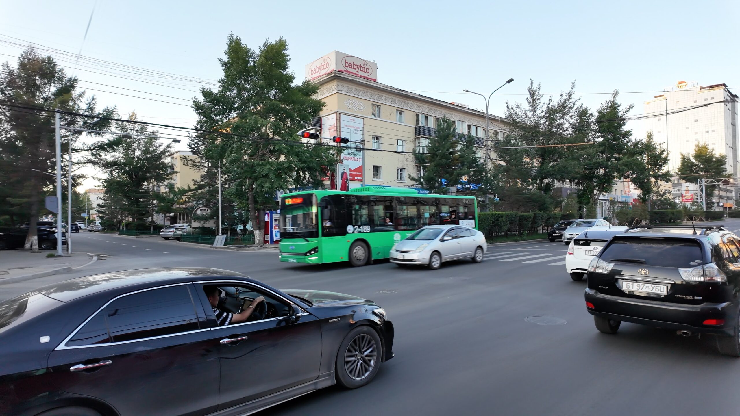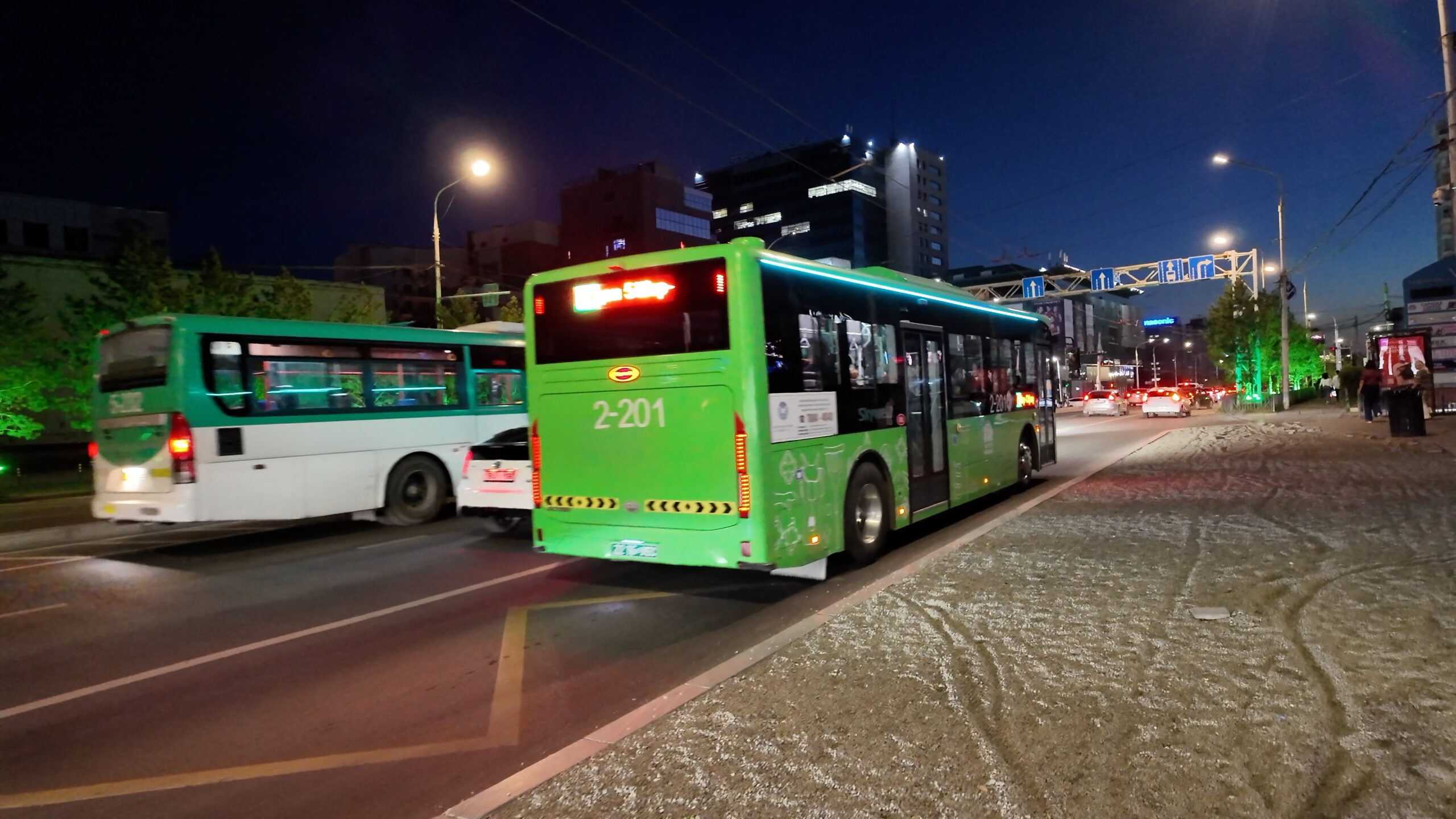 翌朝に帰国するので、実質モンゴル最終日です。ずっとホテルの部屋で過ごすのは名残惜しいと感じたので、夜の7時過ぎにバスで一箇所立ち寄りに行きました。もうこの頃になるとすっかりバスの乗車にも慣れていました。この日で最後なので、バス乗車中は車窓からの景色をじっくりみていました。