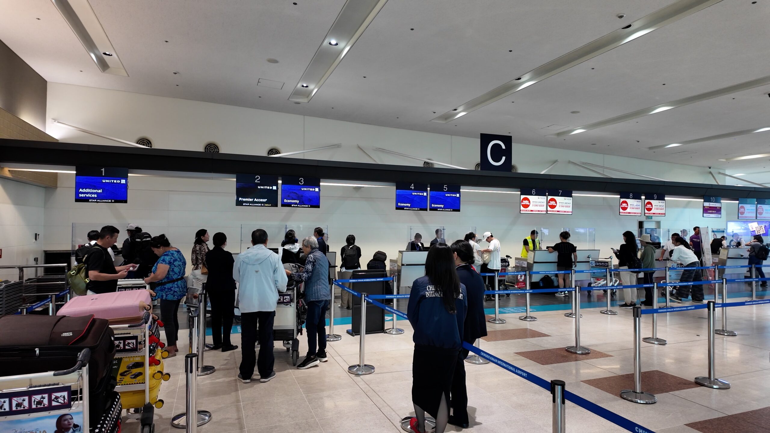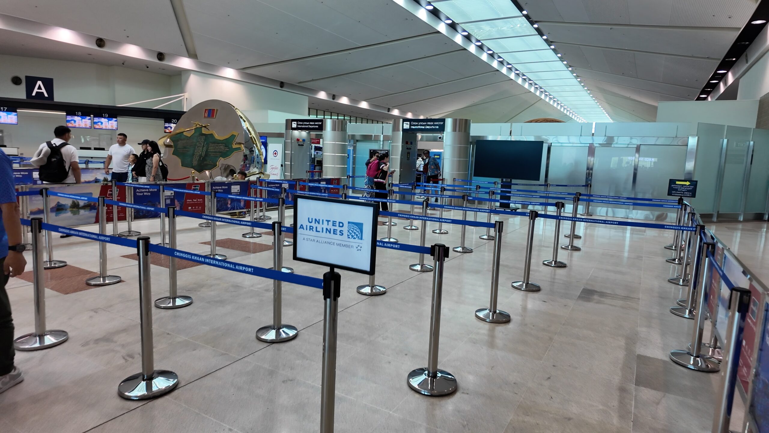 今回はユナイテッド航空のUA6便で成田空港まで行きます。今までの人生でユナイテッド航空を利用した経験がなく、まさかモンゴル・日本間で初めて利用する形になりました。列は空いていてチェックインはサクッと出来ました。