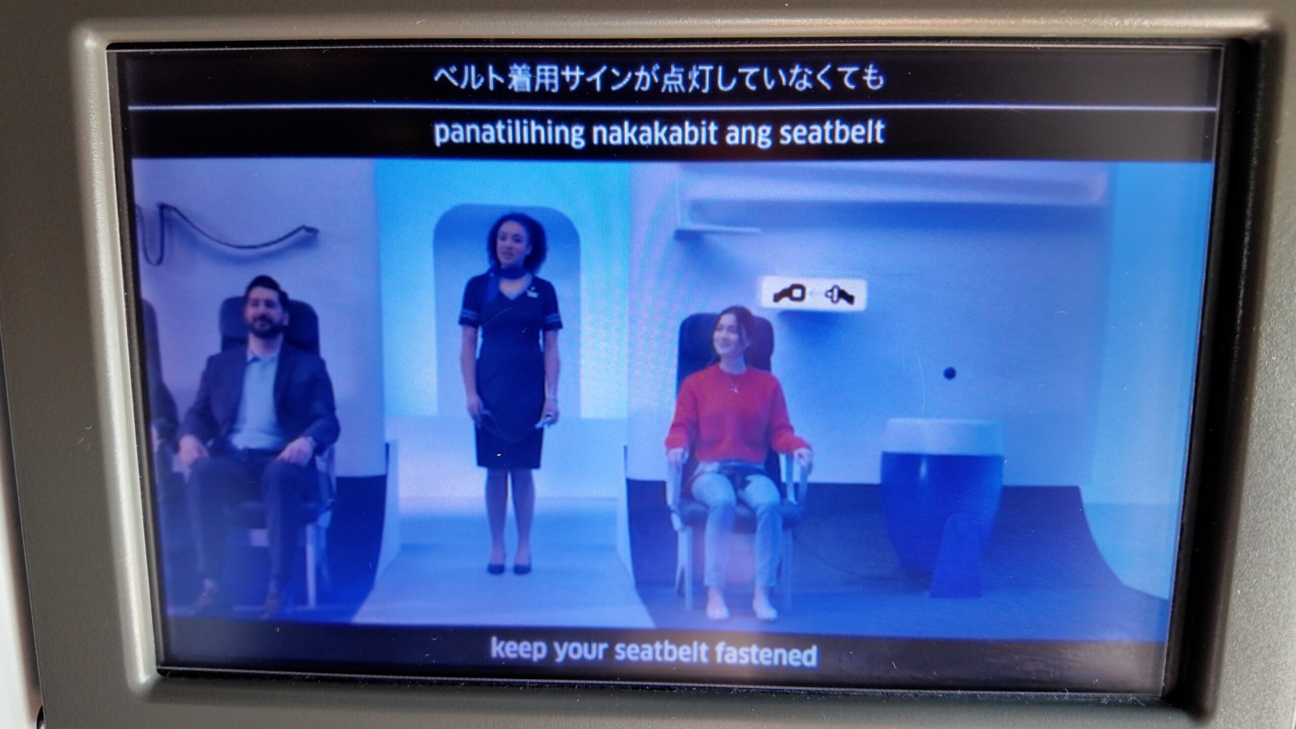 安全ビデオは日本語訳もありました。いつ撮影したんだろうと思ってしまうくらい、レトロ感を感じる映像でした。内容を伝えれば良い訳であり、合理性を考えて昔からのものを利用しているのでしょうか。色々な航空会社を利用しましたが、それぞれの特徴があったり綺麗な見せ方をして、常にアップデートをしているのとは対照的な印象です。