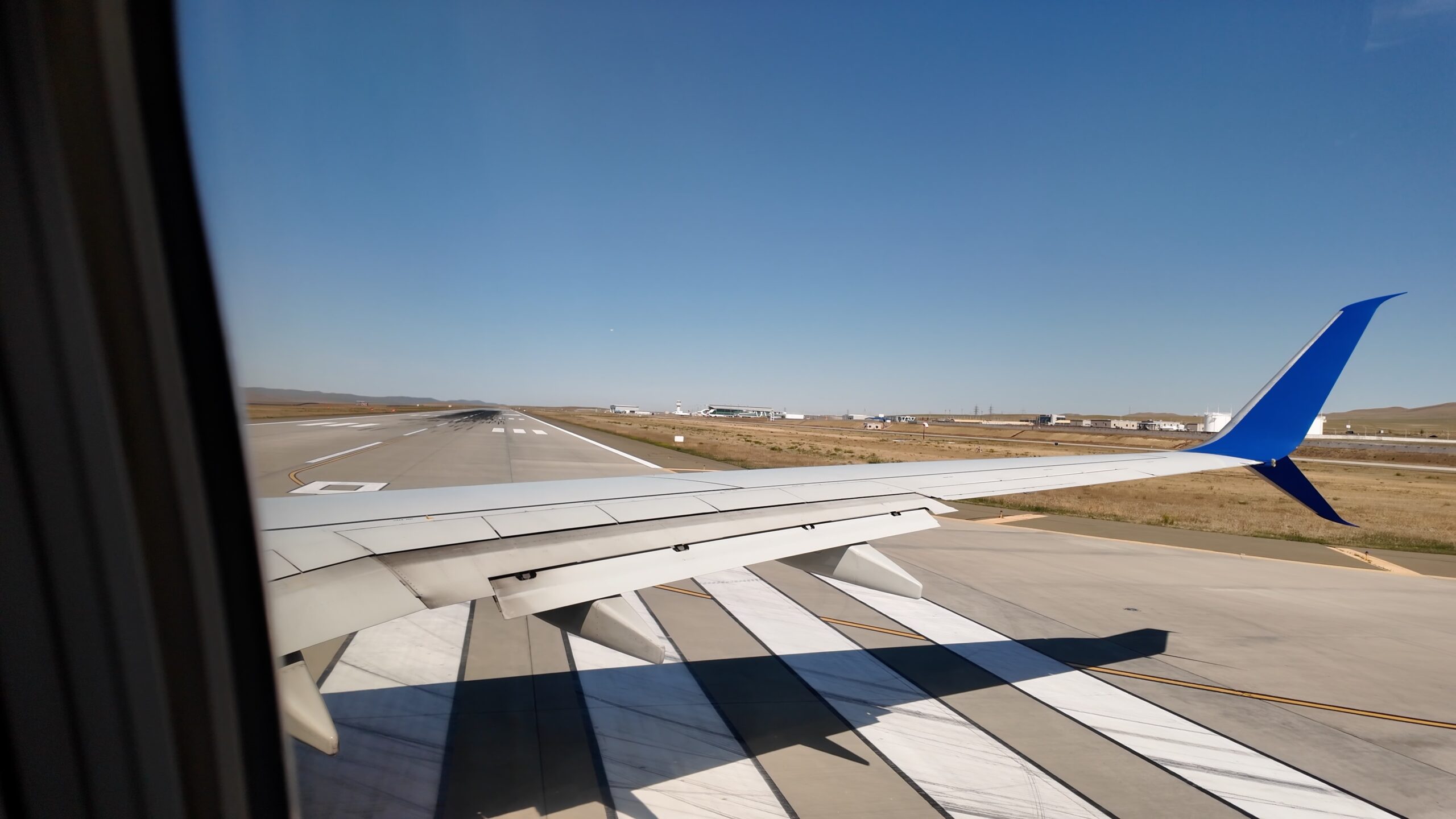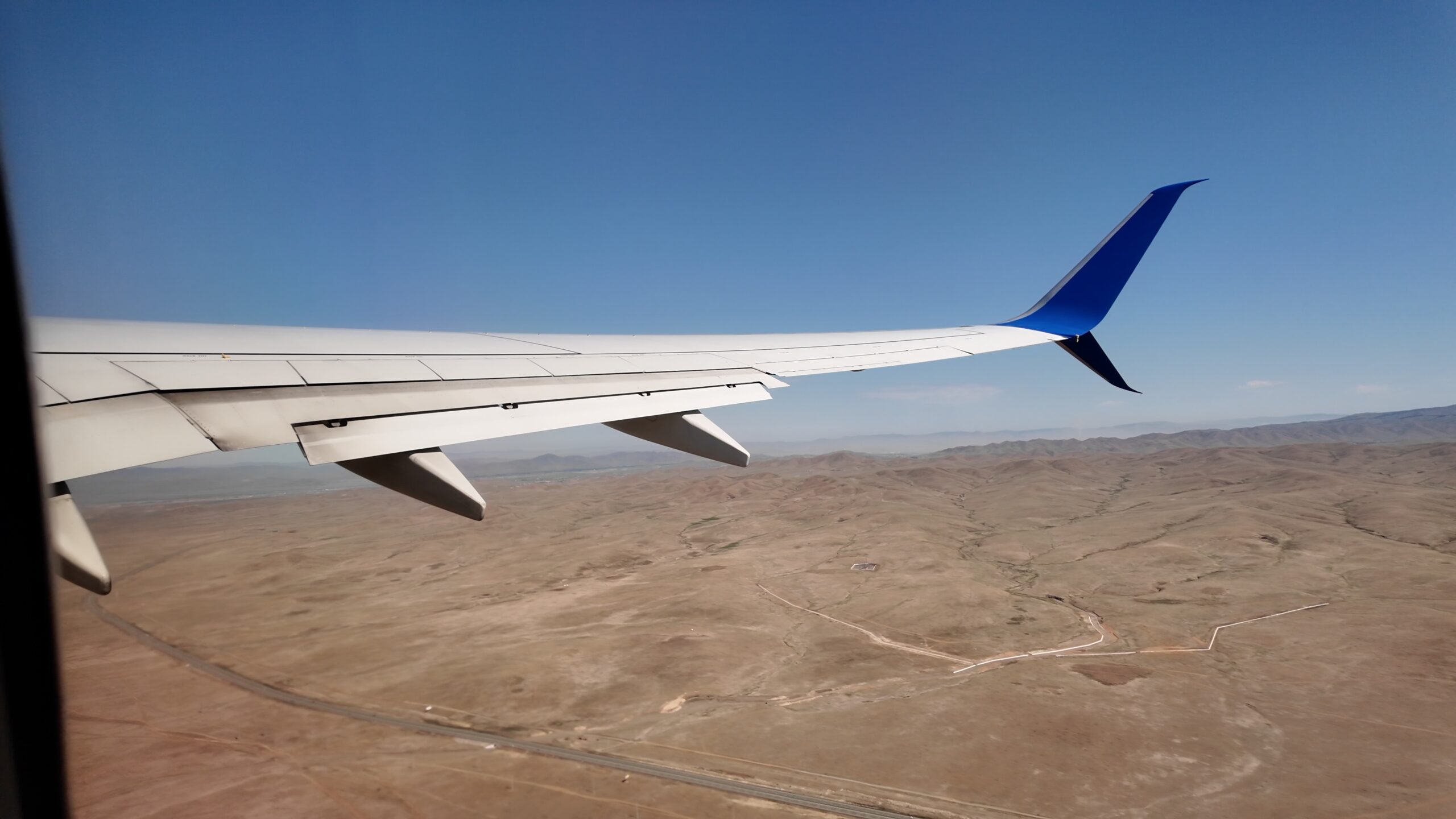離陸直後から空港までタクシー利用した道以外は大草原が続いていました。市内までかなり離れているので街の様子と言うのも全く見えません。ここまで辺鄙な場所にある空港はある意味凄いなと言う感じです。