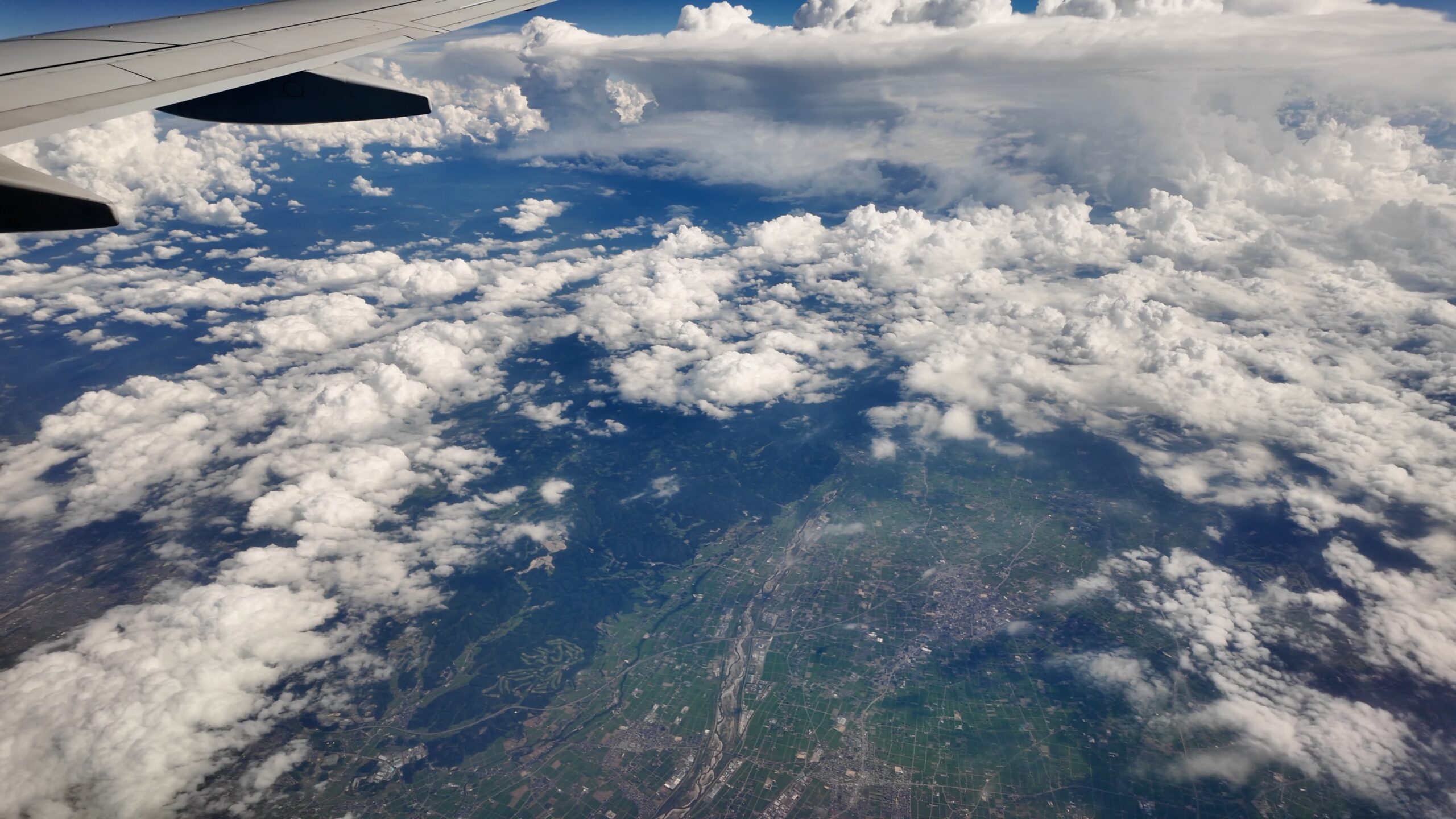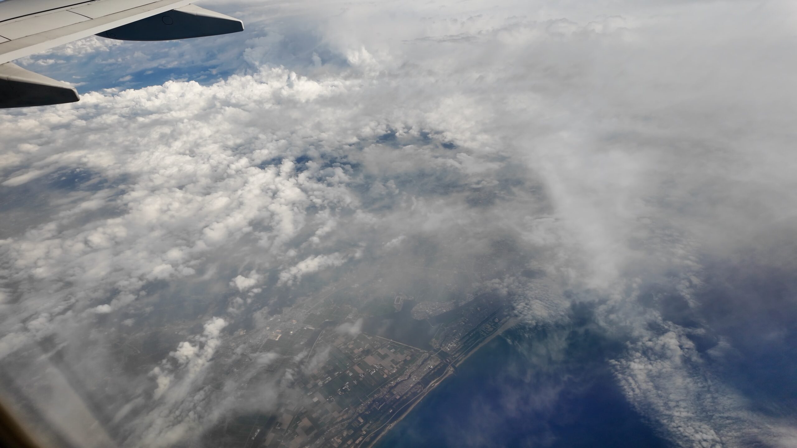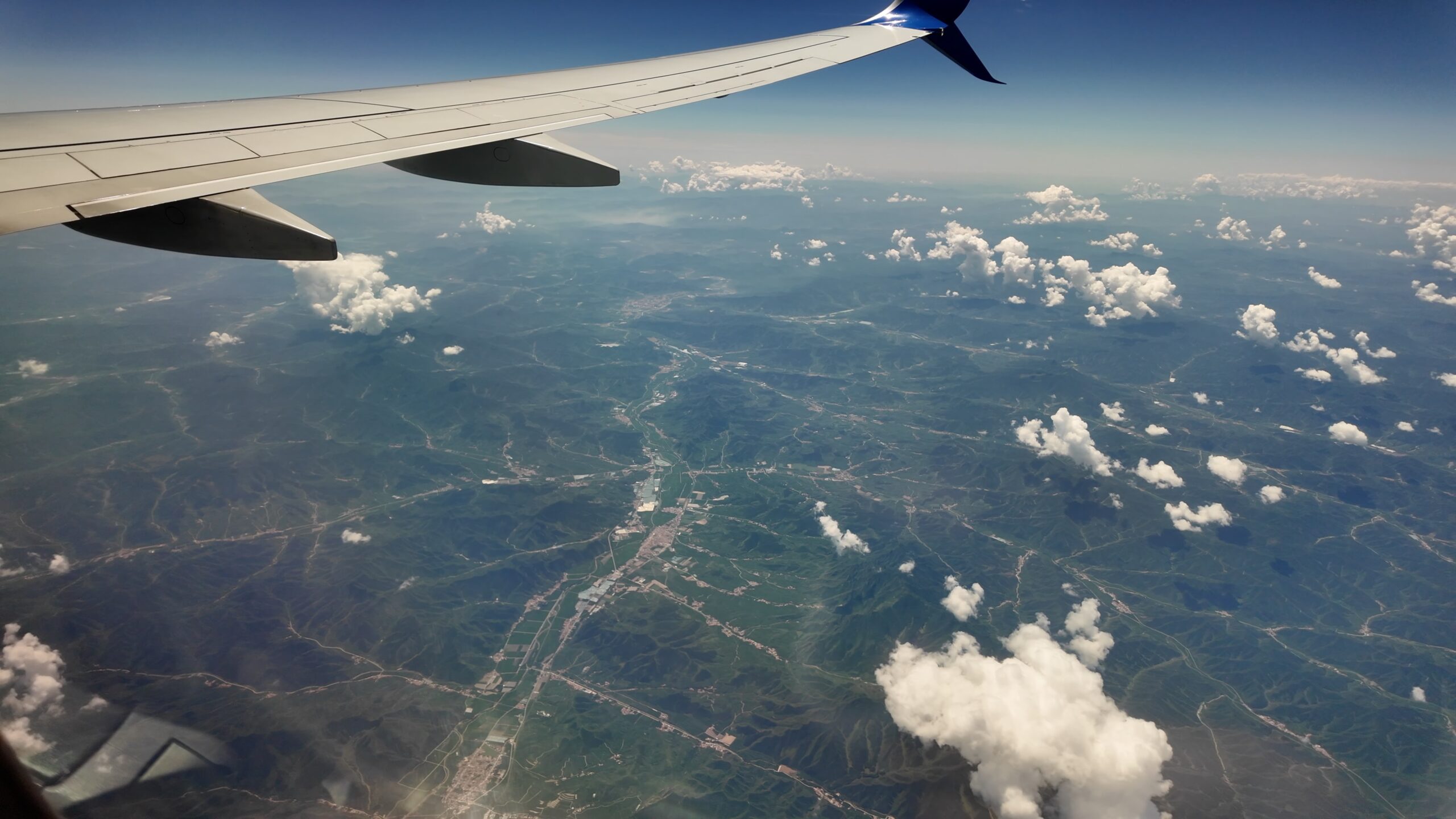海に出て暫く進むと、陸が見えて来て韓国上空をフライトしました。雲が多くて韓国の様子を見れなかったのは少し残念でしたが、天気ばかりは仕方ないですね。