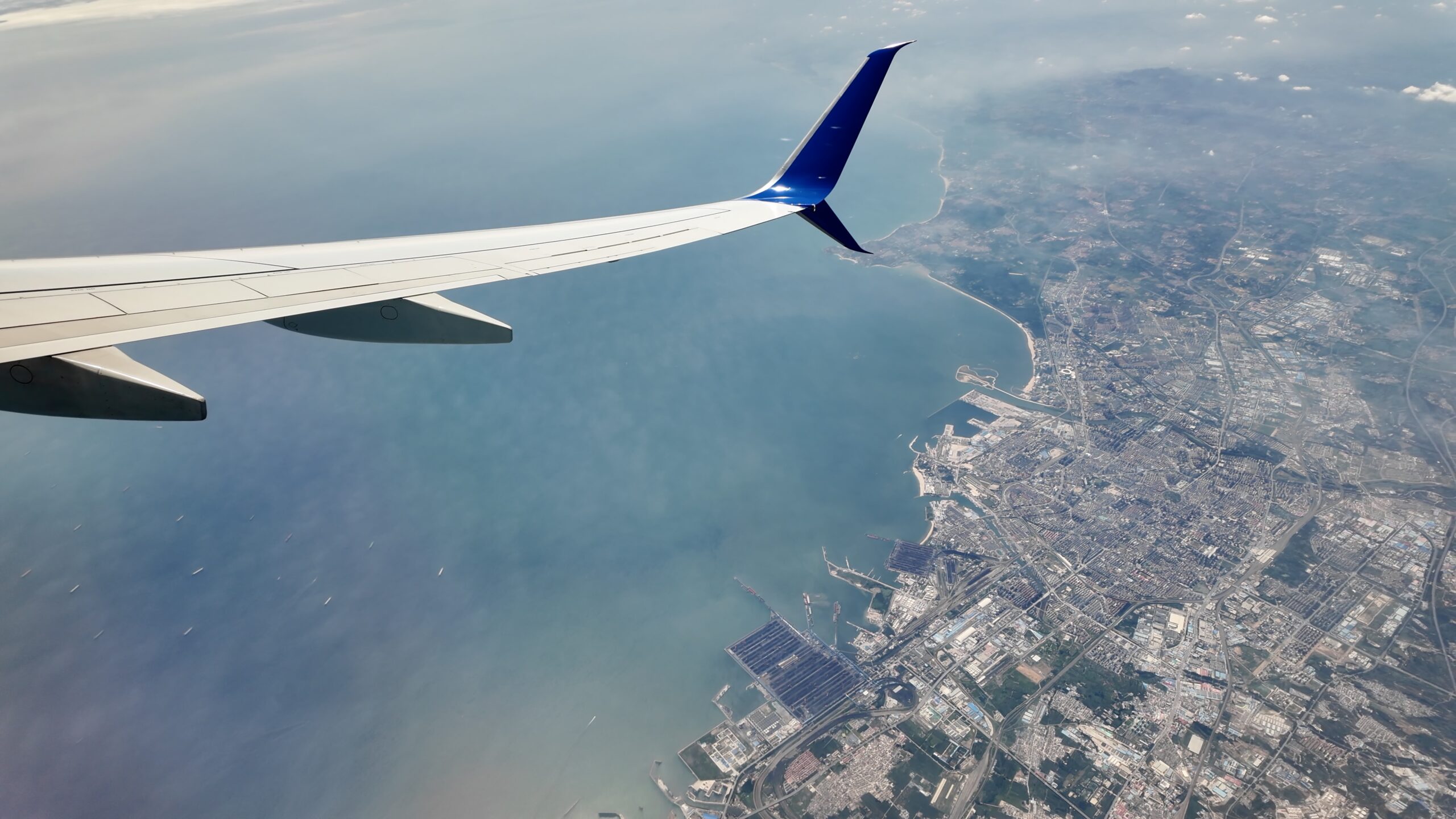 中国上空を抜ける時には景色が一変していました。工業地帯の景色を見ながら進んで、遂に海に出ました。