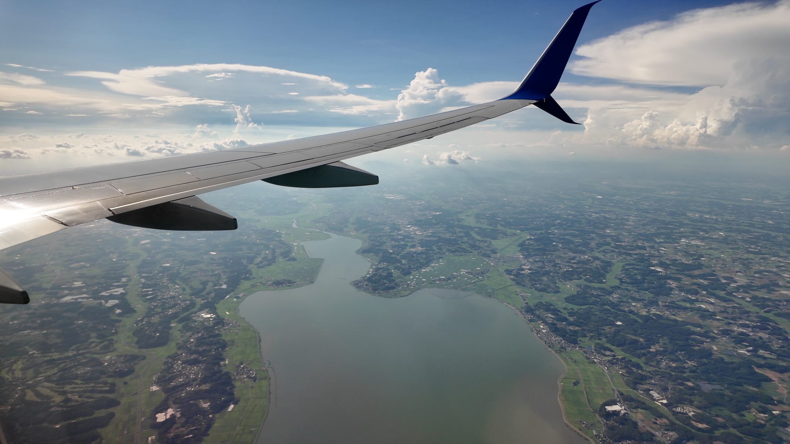 霞ヶ浦付近から内陸部を進んで成田空港を目指します。この辺りになるとかなり高度も下がって景色が良く見えるようになっていました。
