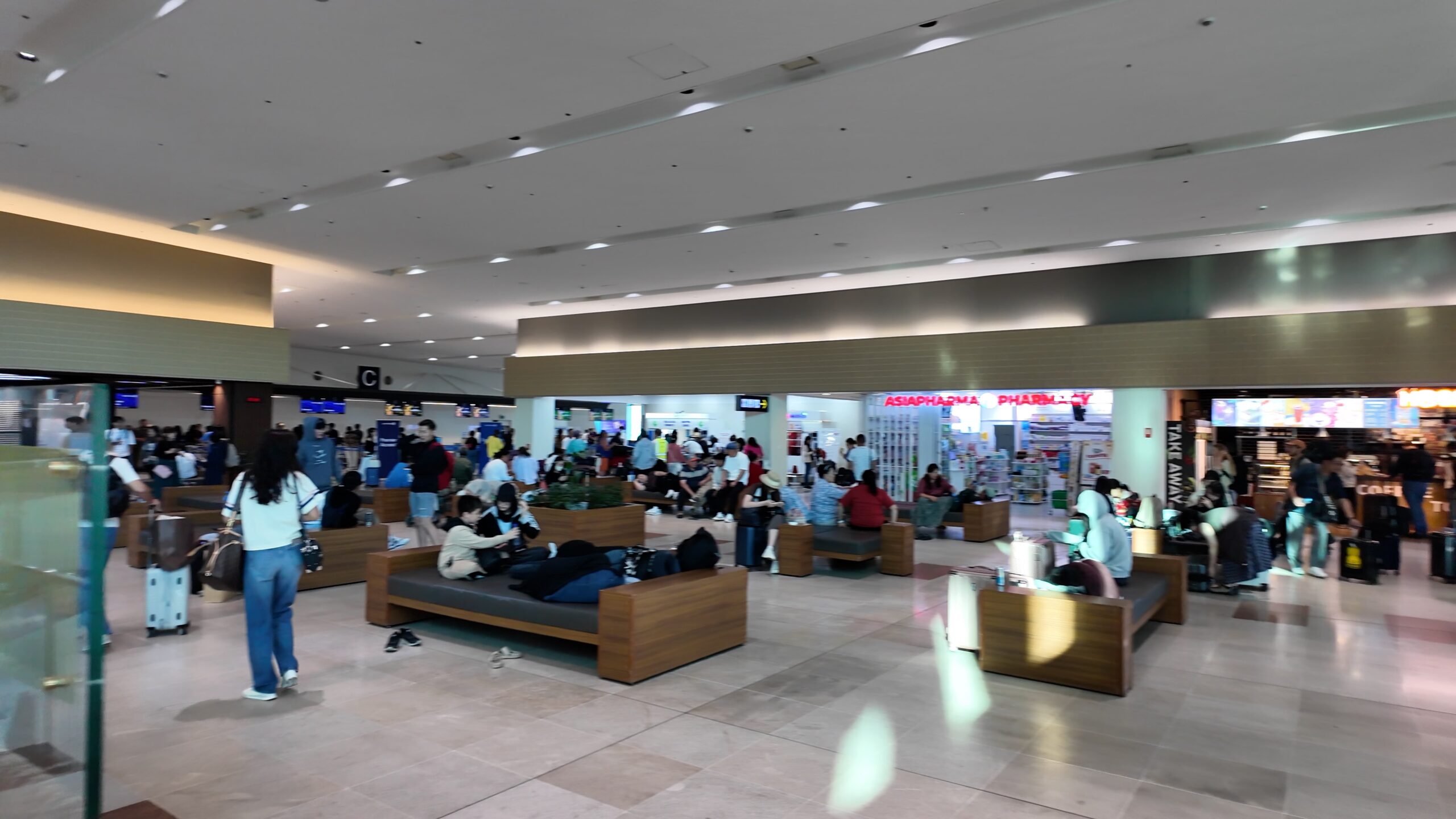 国際線は中央付近に入口がありました。保安検査、出国審査とスムーズに進みました。早く空港に到着した時に限ってスムーズに進みますね。保安検査で何やら没収された事に対して、日本人が日本語で抗議していたのですが、恥ずかしくて見ていられませんでした。何に対して言っていたのかまでは分かりませんが、少なくても日本語で言ったって分かる訳が無いので、せめて英語で翻訳アプリ使うなり伝える工夫をしないとダメに決まっています。加えてルールは客ではなく検査官なので従うべきです。機内持ち込みが出来ないようなもののようで、結局一旦外に出たので預け入れ荷物にしたのかもしれません。