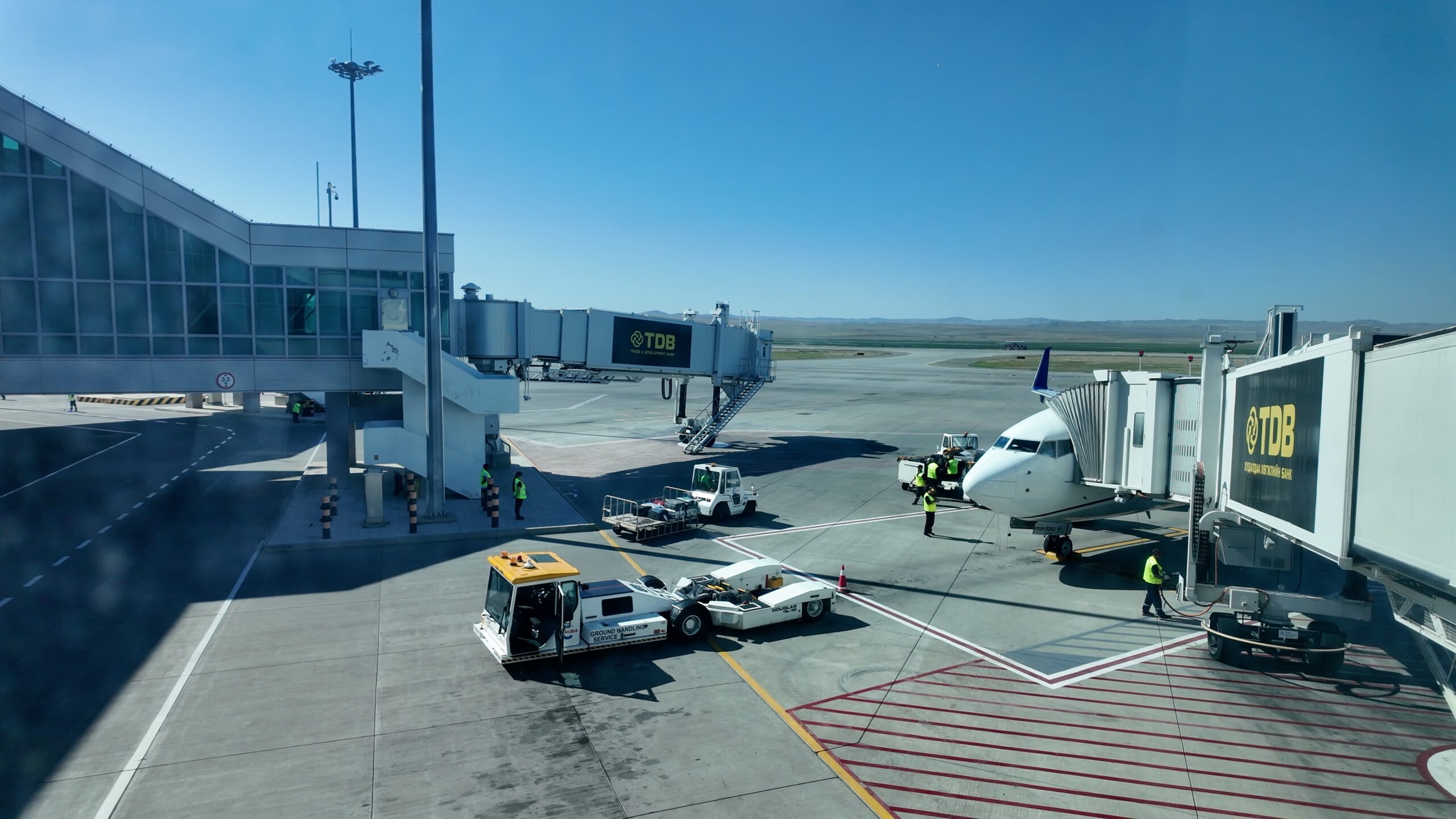 暫くするとエアロ・モンゴリアと思われる飛行機が離陸して行きました。この時間帯は一本の滑走路が利用頻度高そうでした。