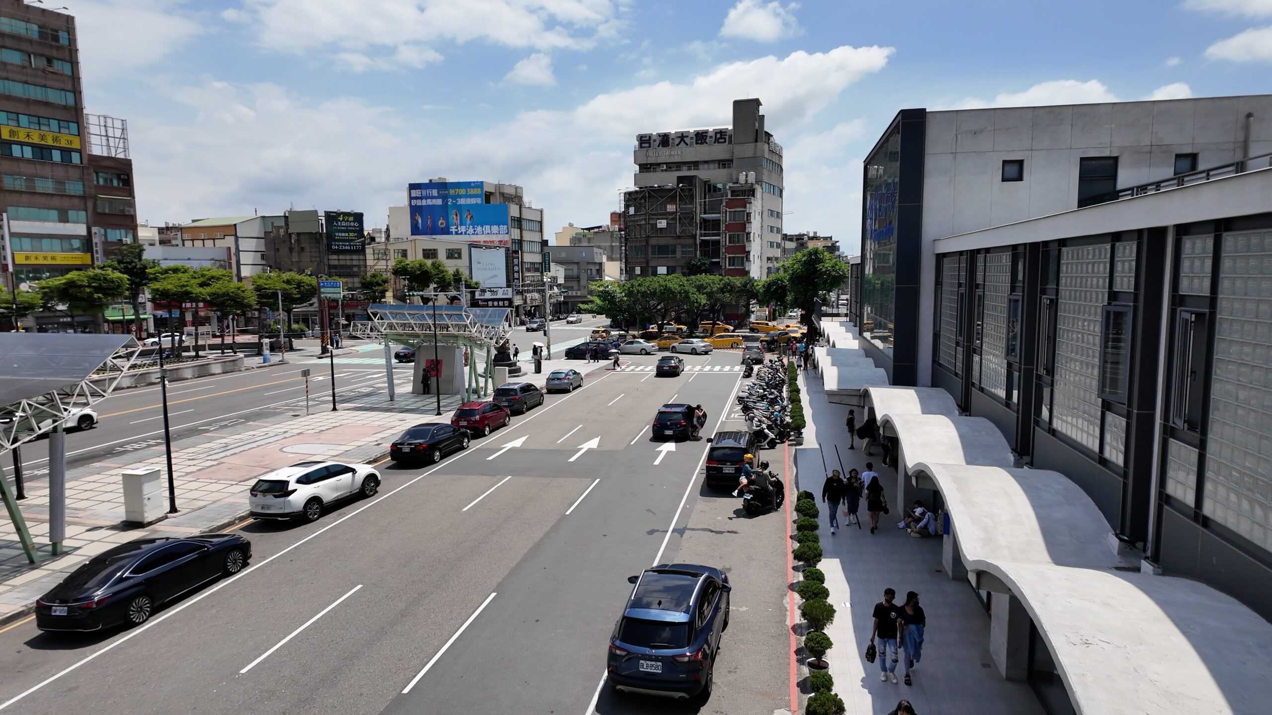 新竹駅の駅舎です。とてもレトロ感が漂う駅舎でしたが、振り返ってロータリー側を見ると、高層の商業ビルが幾つかあって、彰化駅の駅前の景色とは全く異なる感じでした。どちらが良い悪いではなく、新竹駅前の方がかなり都会的な印象です。
