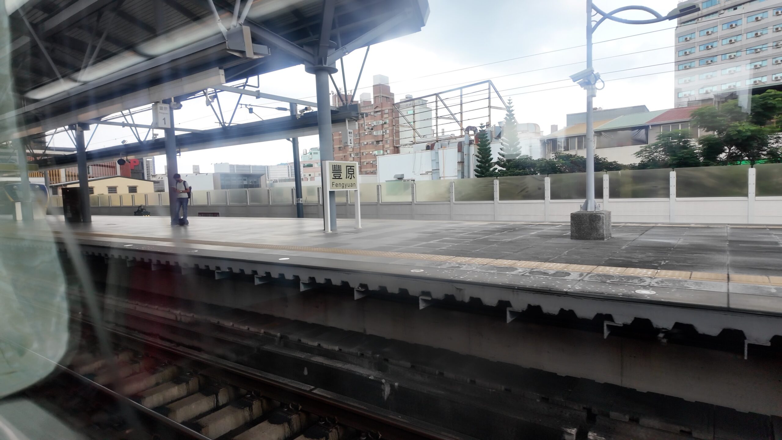 続いての停車駅は豊原駅です。台中は勿論ですがこの駅も周辺は高いビルがあり、車内から見ただけですが、彰化駅とは雰囲気が異なり、近代的な感じに見えました。彰化駅の周辺方がローカル(レトロ)感があるような感じです。ホームが高架と言うのもそのように見えた原因なのかも知れません。