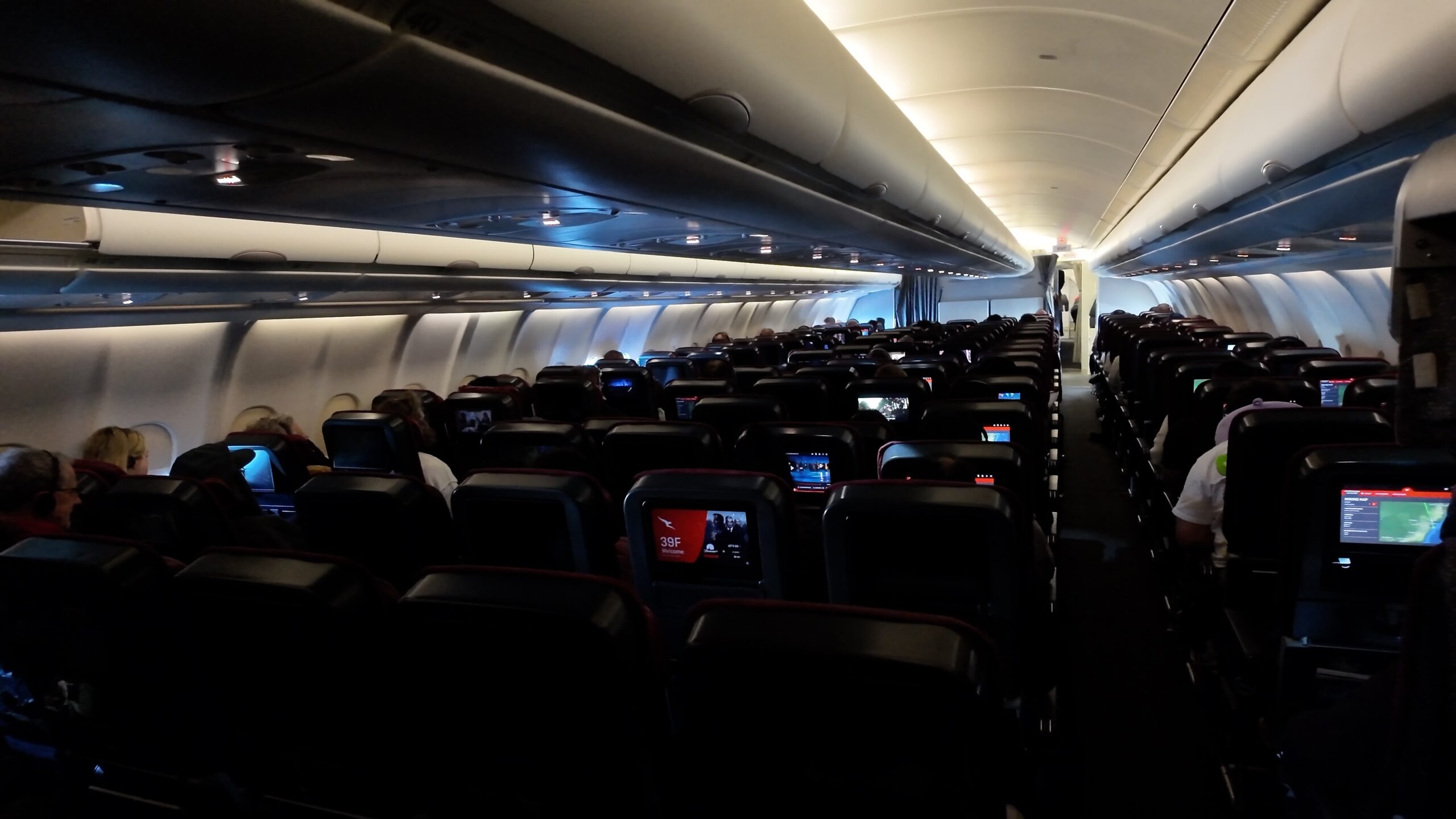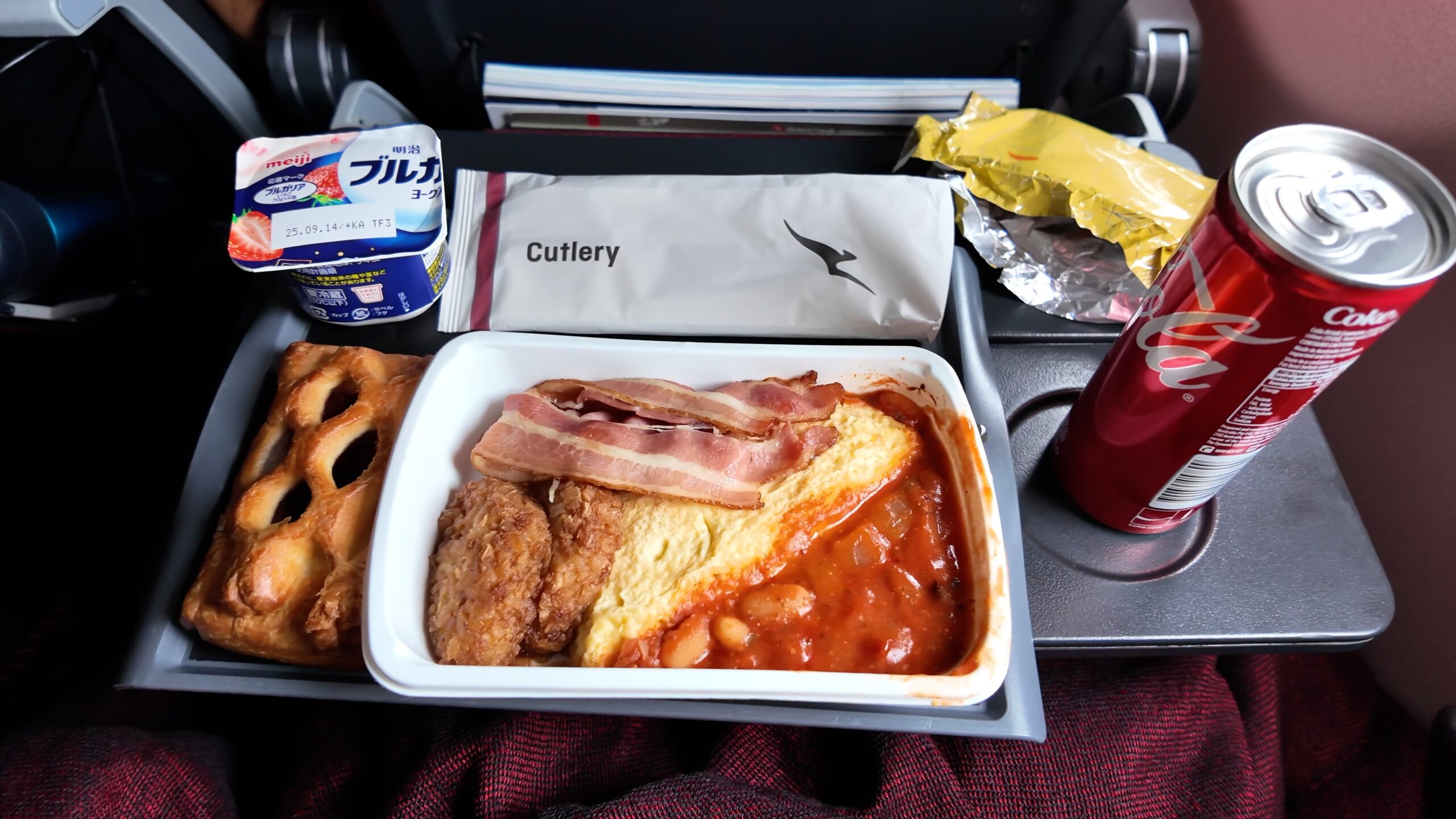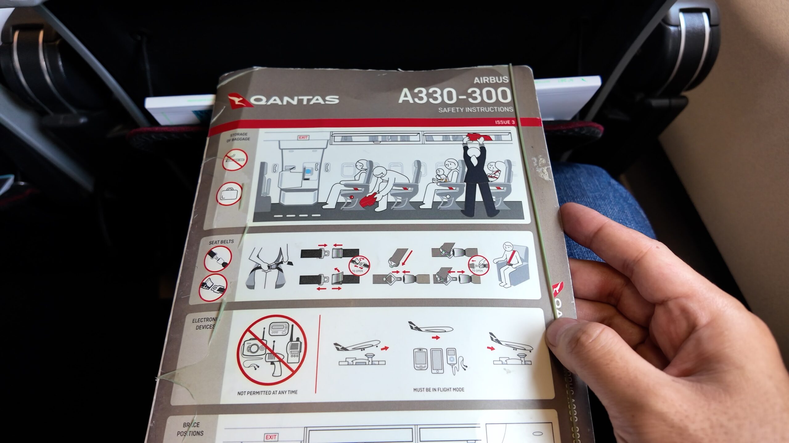 優先搭乗で機内に入りました。使用機材はA330-300でした。2+4+2のシート配列です。ディスプレイは日本語対応されていて、コンセントは無かったのですが、USBの口はありました。充電出来ると思って喜んでいたのですが、結局充電出来ずスマホもこの後の移動もあるので、バッテリーをセーブしたくて事前に入れたコンテンツ視聴を控えておくようにしました。窓側を確保していてどんな人が横に来るのかなと思っていたのですが、横にはお客さんが来ませんでした。加えて後ろも人が居なかったので、リクライニングも気兼ねなく出来そうな感じでした。後方側という事もあってなのか、空席が結構あり私の周辺では半分強埋まっているような感じです。お客さんは圧倒的にオーストラリア人が多いようでした。