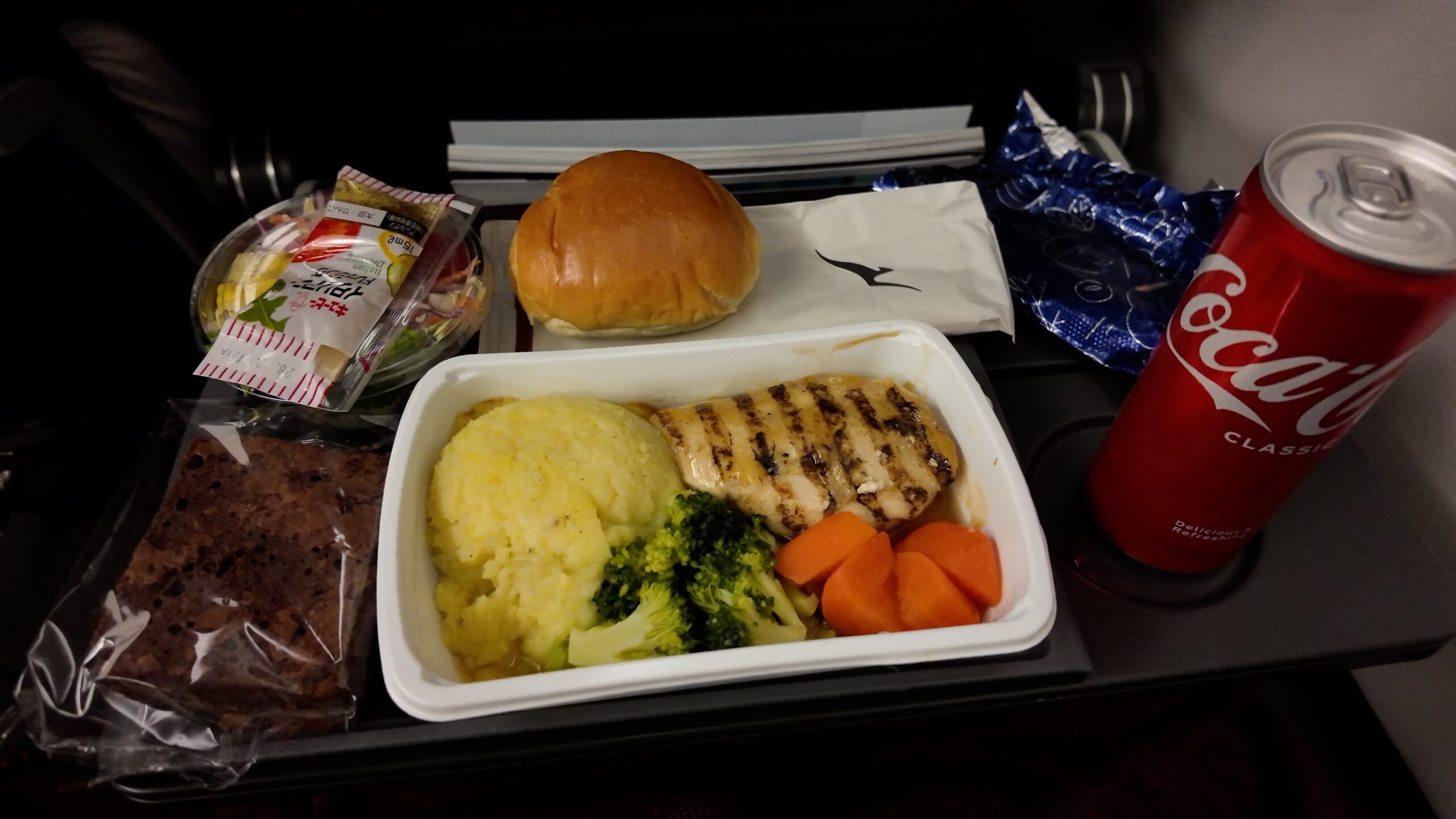 いつの間にか機内が明るくなり、到着の2時間半から3時間前あたりで2回目の食事が配られました。チキンを選択しましたが、食べ易くて良かったです。シドニー到着後に食事出来るか微妙だったので、しっかり食べておくようにしました。