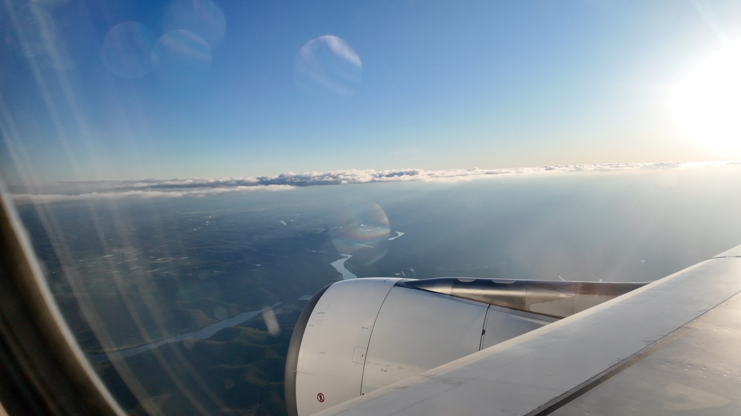 D滑走路から離陸となりました。離陸後は直ぐに雲の中へ入ってしまい、殆ど景色を見る事なく雲の上へと進んでしまいました。