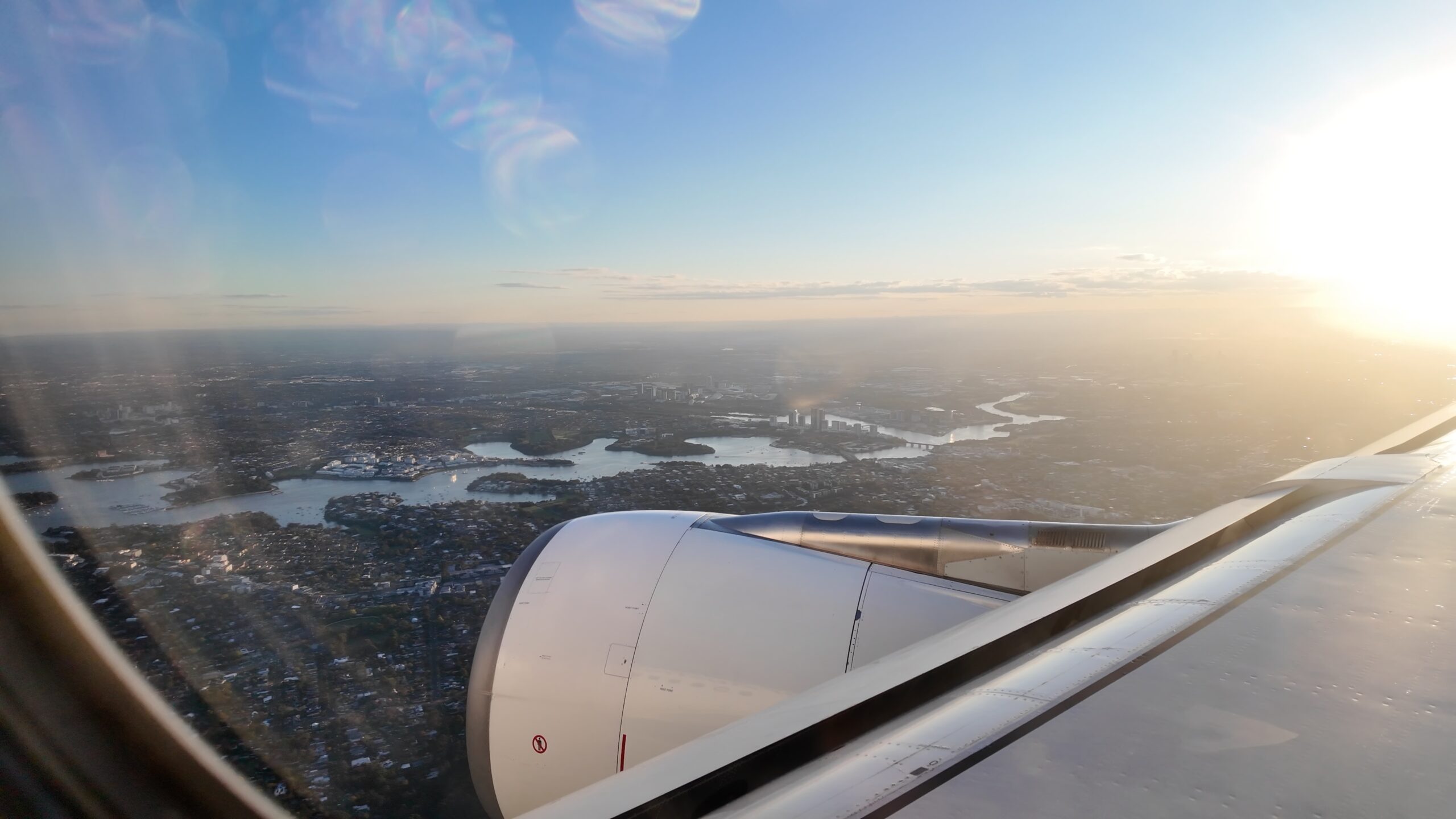 空港到着前には街の様子を見ることが出来たのですが、とても綺麗に感じました。以前にゴールドコーストやブリスベンに行った時にも感じたので、オーストラリア国内はどこも綺麗なのでしょうね。高層ビルも見えていたので、シドニーの街なのかなと思いながら景色を見ていました。