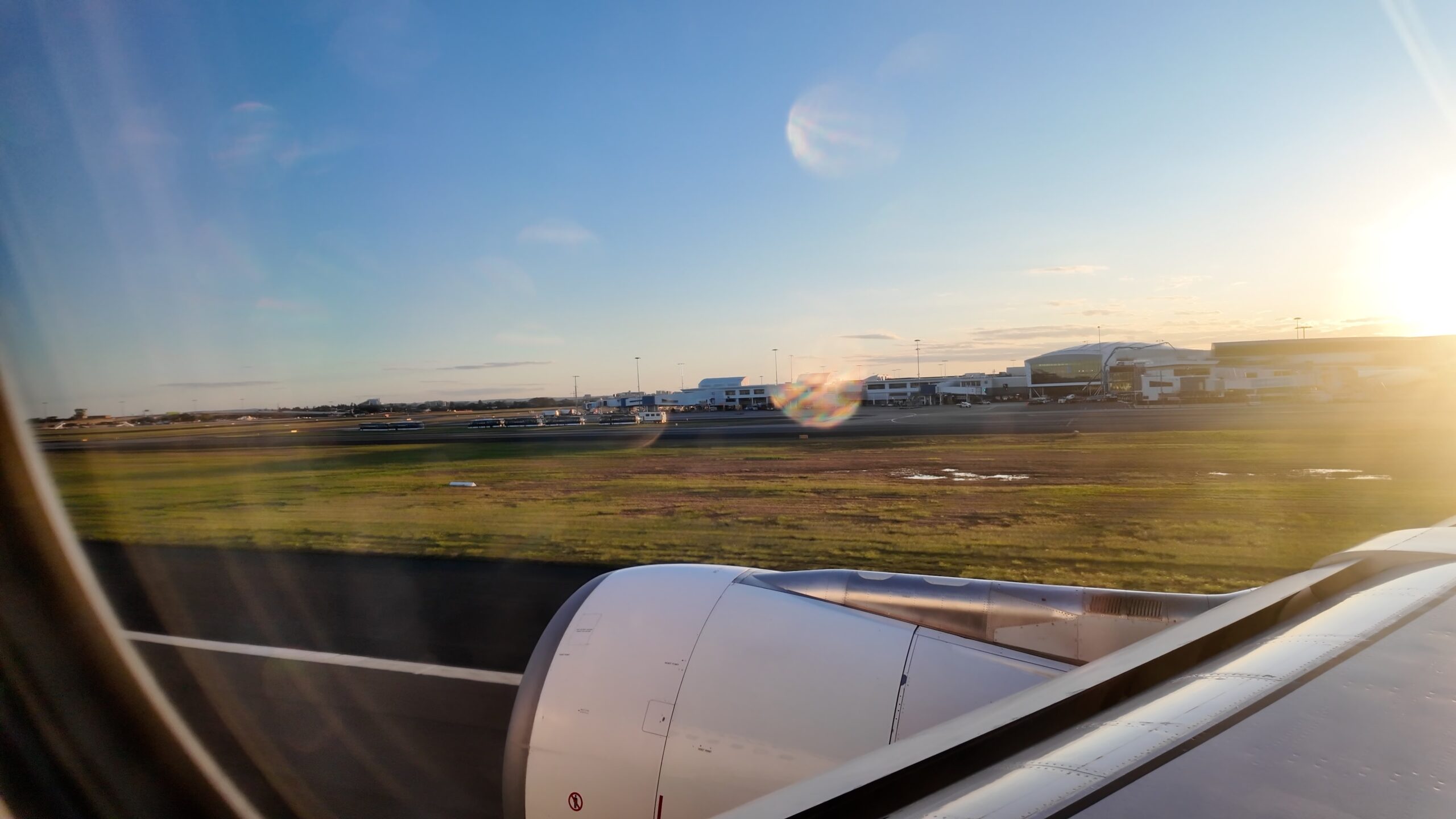 そして夕陽が差し込む中で、シドニー国際空港に到着となりました。フライト時間は長かったのですが、横に人が居ないのもあり、それ程苦にならずに来る事が出来ました。以前にゴールドコーストに行った時にはLCCのジェットスターで足元がキツイ中で行っていたので、その時の経験があるので、とても快適に感じたのかもしれません。