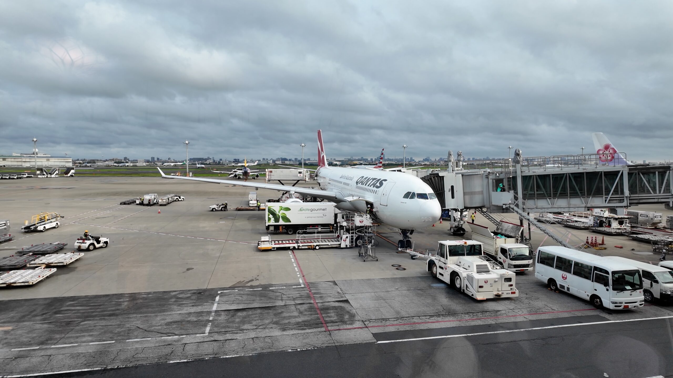 今回はカンタス航空QF26便でシドニー国際空港へ行きます。搭乗口に来ると飛行機が見えました。カンタス航空を利用するのは今回が初めてです。オーストラリア自体はコロナ禍前にゴールドコーストとブリスベンに行った事があります。