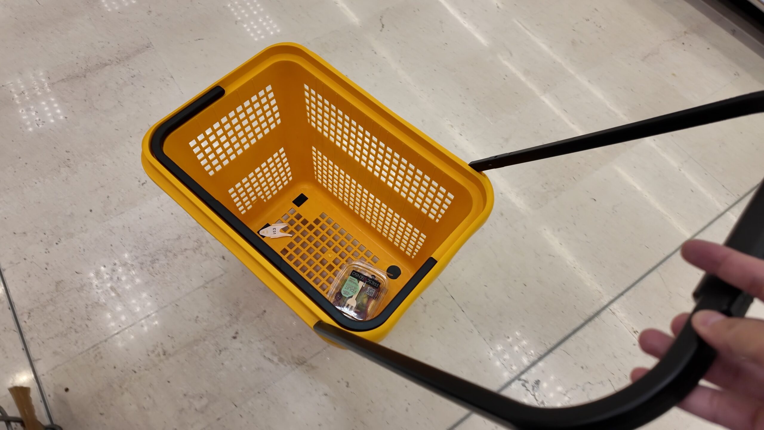 食事後はスーパーに行って部屋食の調達を兼ねて、イタリアのスーパーを見学しました。まずカゴがこのような大きく転がすようなカゴしかなかったのにビックリです。デザート、ヨーグルトやスナック、飲み物等を少し購入したかっただけなので、日本で見るレジカゴのようなものはなく仕方ないので大きなカゴを転がしながら店内を見学しました。