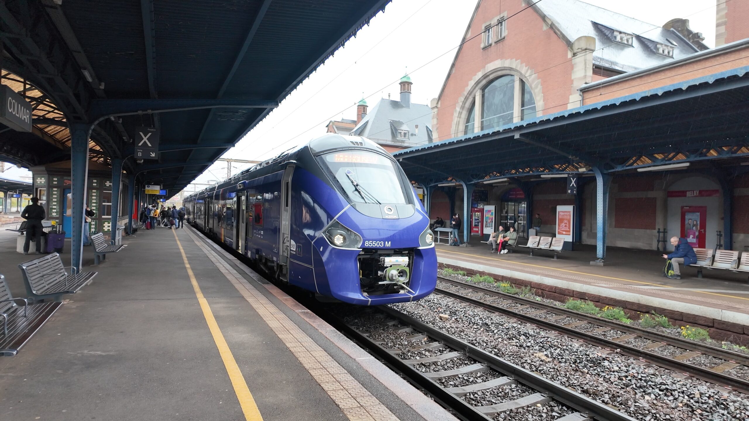 この駅も凄く歴史を感じさせる建物でした。ヨーロッパの駅はこのようなのばかりです。この後は雨の中、コルマールの観光をしますがその様子は次回で。ここまでの様子を動画にしていますので、合わせてご覧下さい。