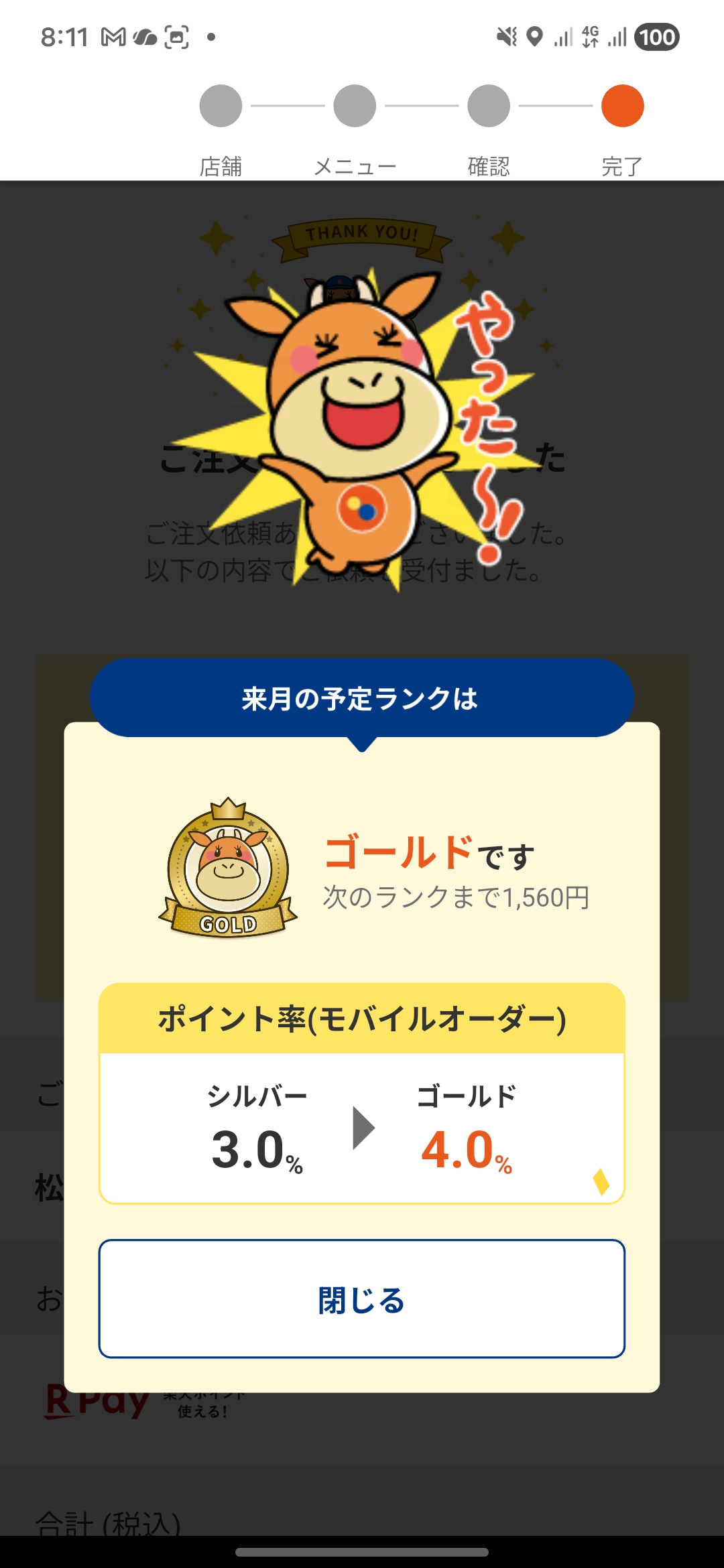 今回の注文で来月のポイントランクが久々にゴールドに到達しました。ただ、モバイルオーダー時の還元率はシルバーとゴールドで1%しか差がないので、もう少し差があると嬉しいところですが、なかなか難しいのかもしれませんね。