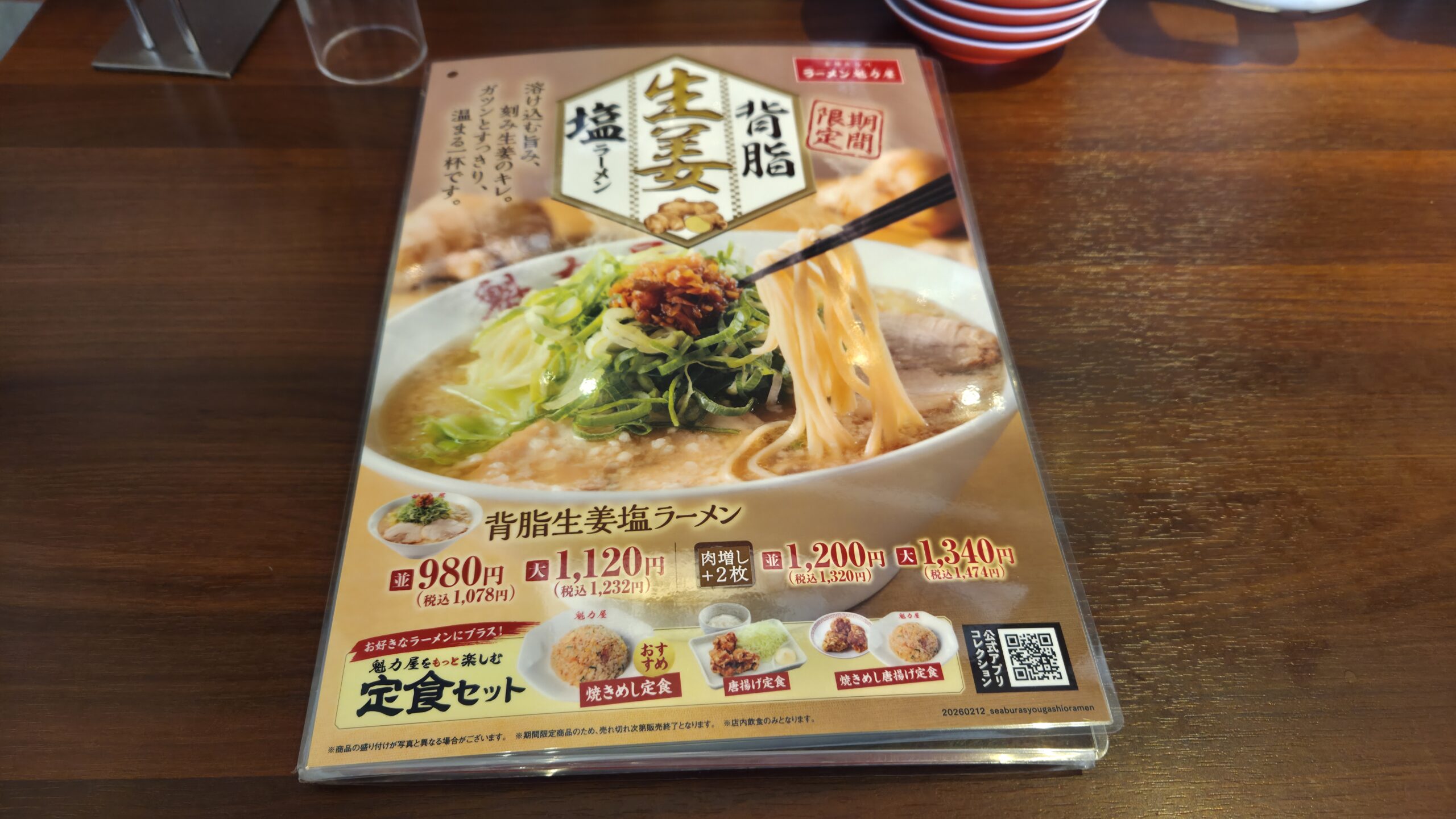 魁力屋の期間限定メニューは、通常約1ヶ月前後の提供です。「背脂生姜塩ラーメン」は、寒い時期にぴったりの一杯でした。冷え込む日が続く今、ぜひお近くの店舗で試してみてください!