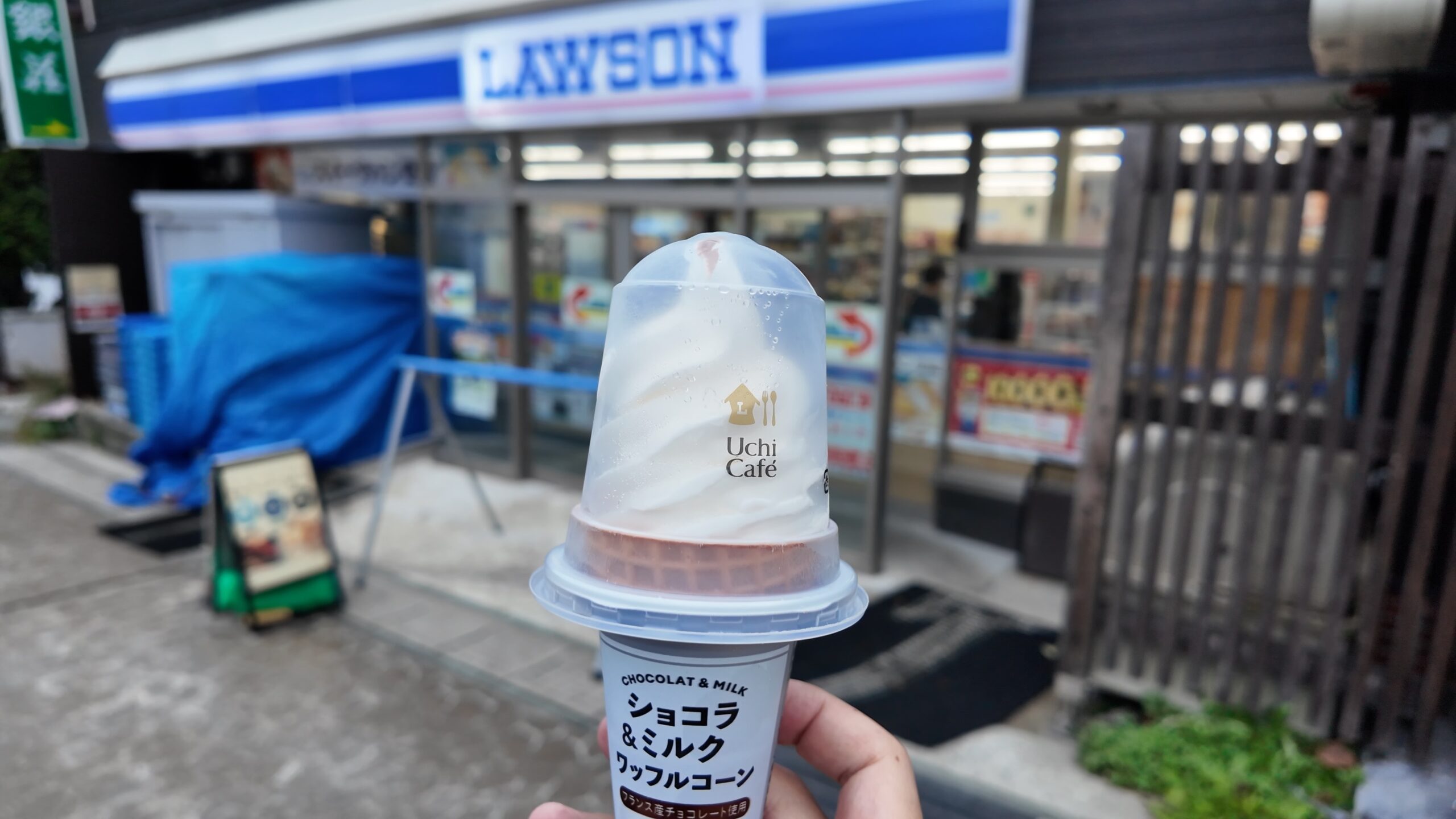 バスターミナルへ行く途中でローソンがあったので、アイスクリーム休憩をしました。完全に「整った」状態になりバスに乗車出来そうです。