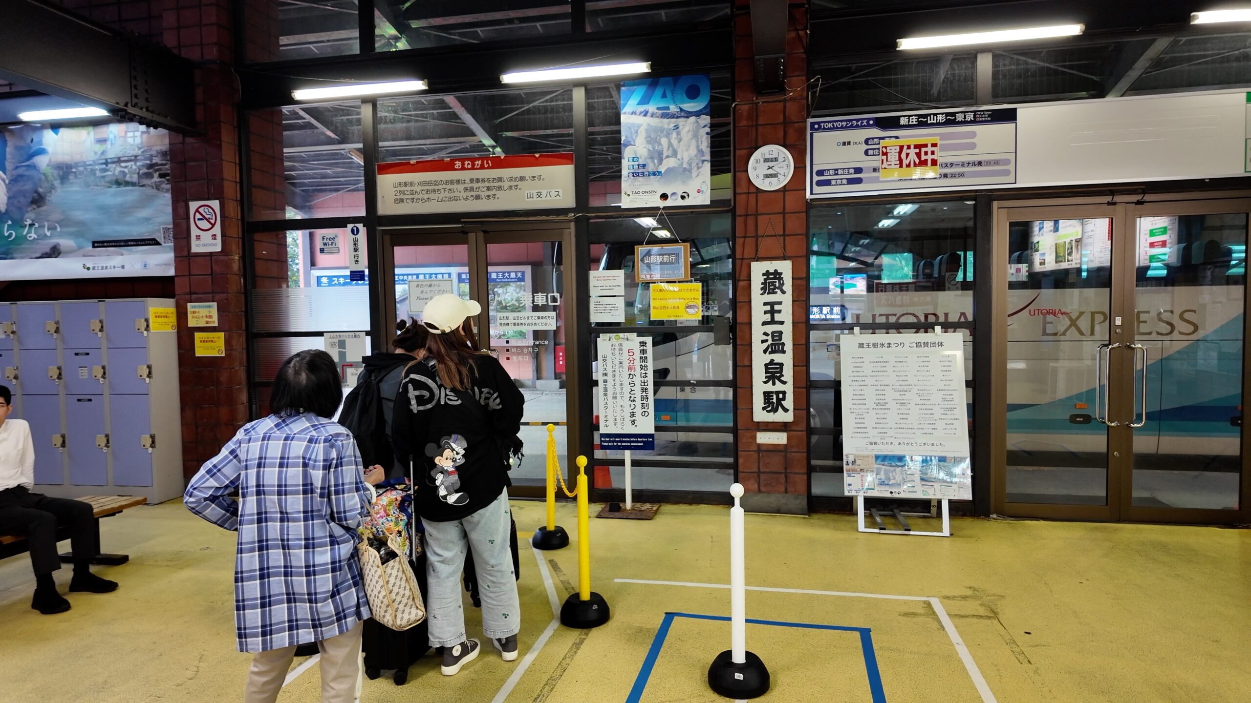 バスターミナルに少し早めに来ました。どの程度混雑するのか分からなかったので早めに来たのですが、余裕で乗車出来るお客さんの数でした。行きに多くの外国人がいましたが、皆さん蔵王で宿泊するのか、帰りは外国人観光客はいませんでした。