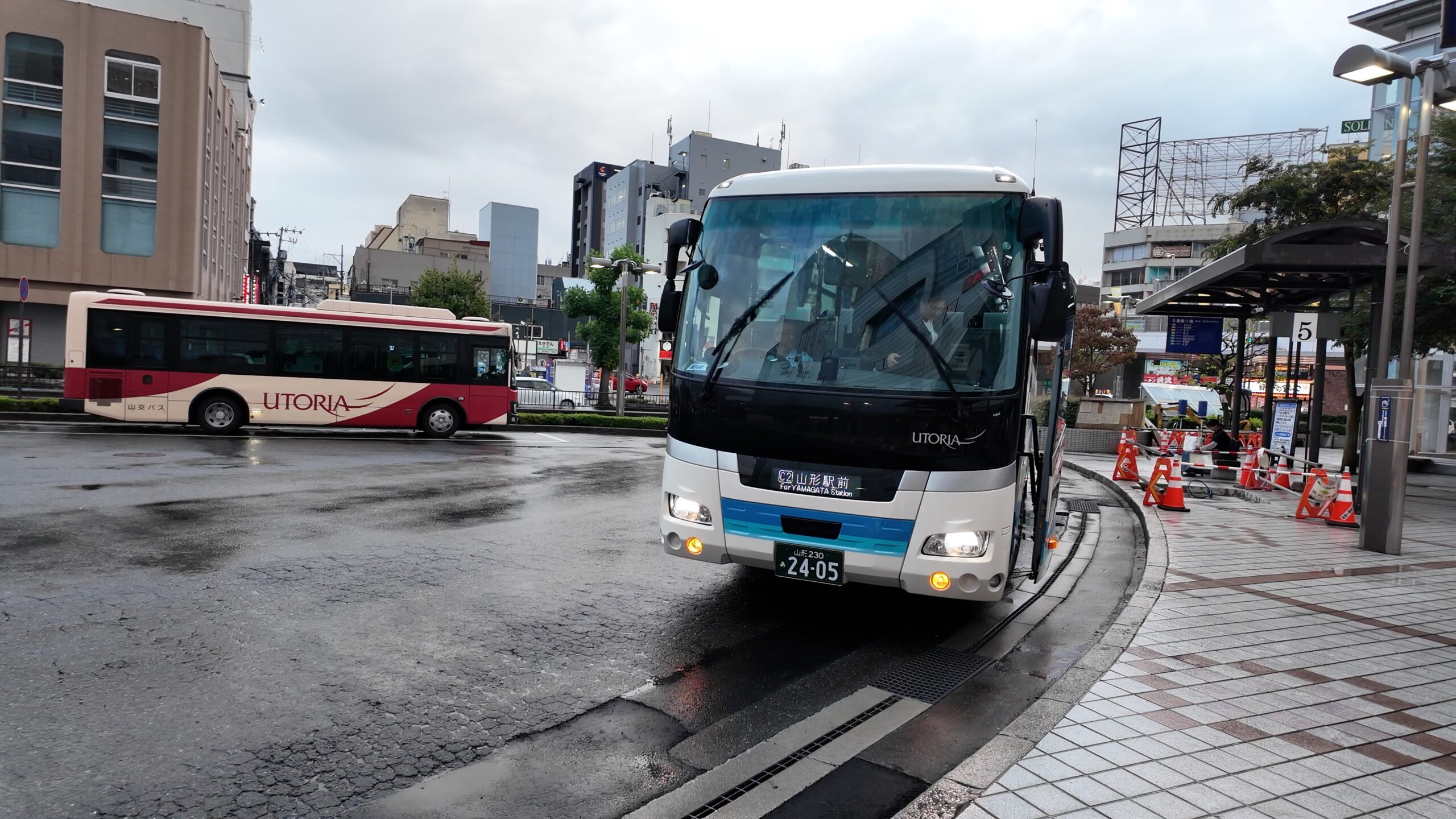 雨の天気の中、山形駅に到着です。夕方の時間帯と言う事もあり途中から乗車する地元客の人がかなりいましたが、座席が多いバスだったので混雑という感じは全くなかったです。
