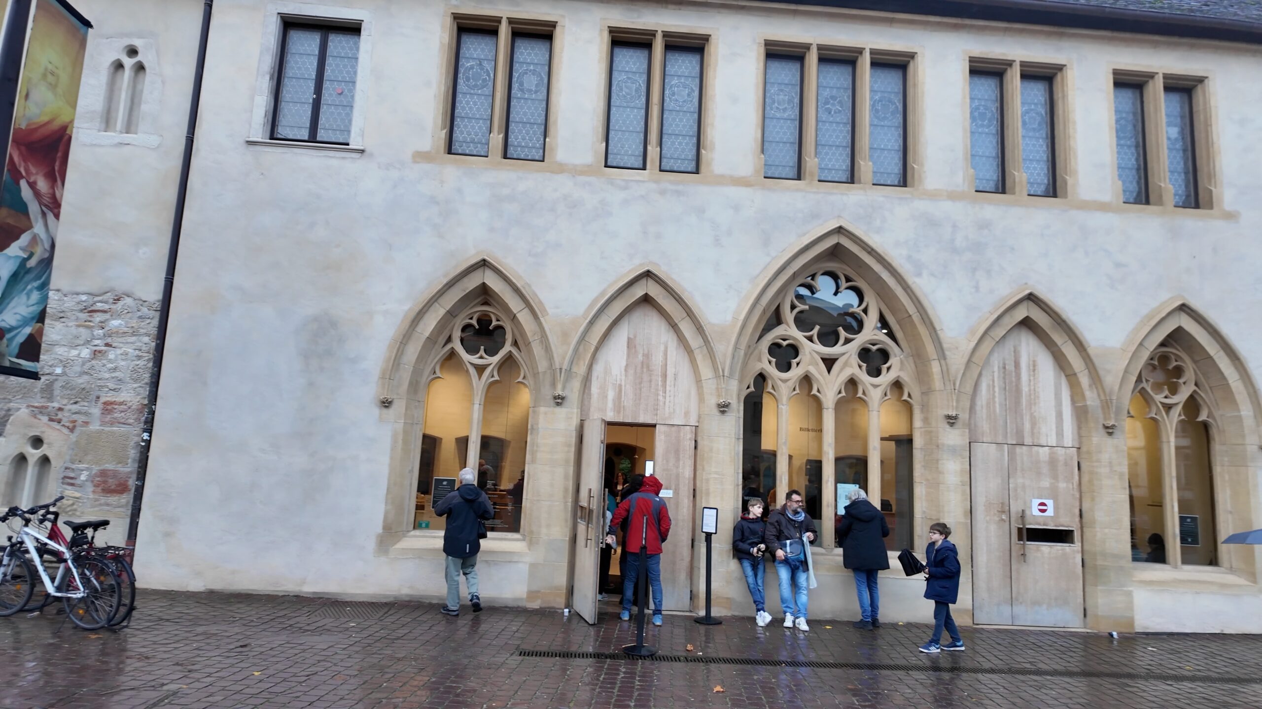 食事休憩後にやって来たのが、こちらの「ウンターリンデン美術館」です。美術館の入口がどこにあるのか中々分からなかったのですが、人が入るのを見て中に入ったら受付がありました。もっとデカデカと分かりやすい入口になっているのかなと勝手に思っていたのですが、人が入るのを見なければ素通りしてしまいそうな地味な入口でした。