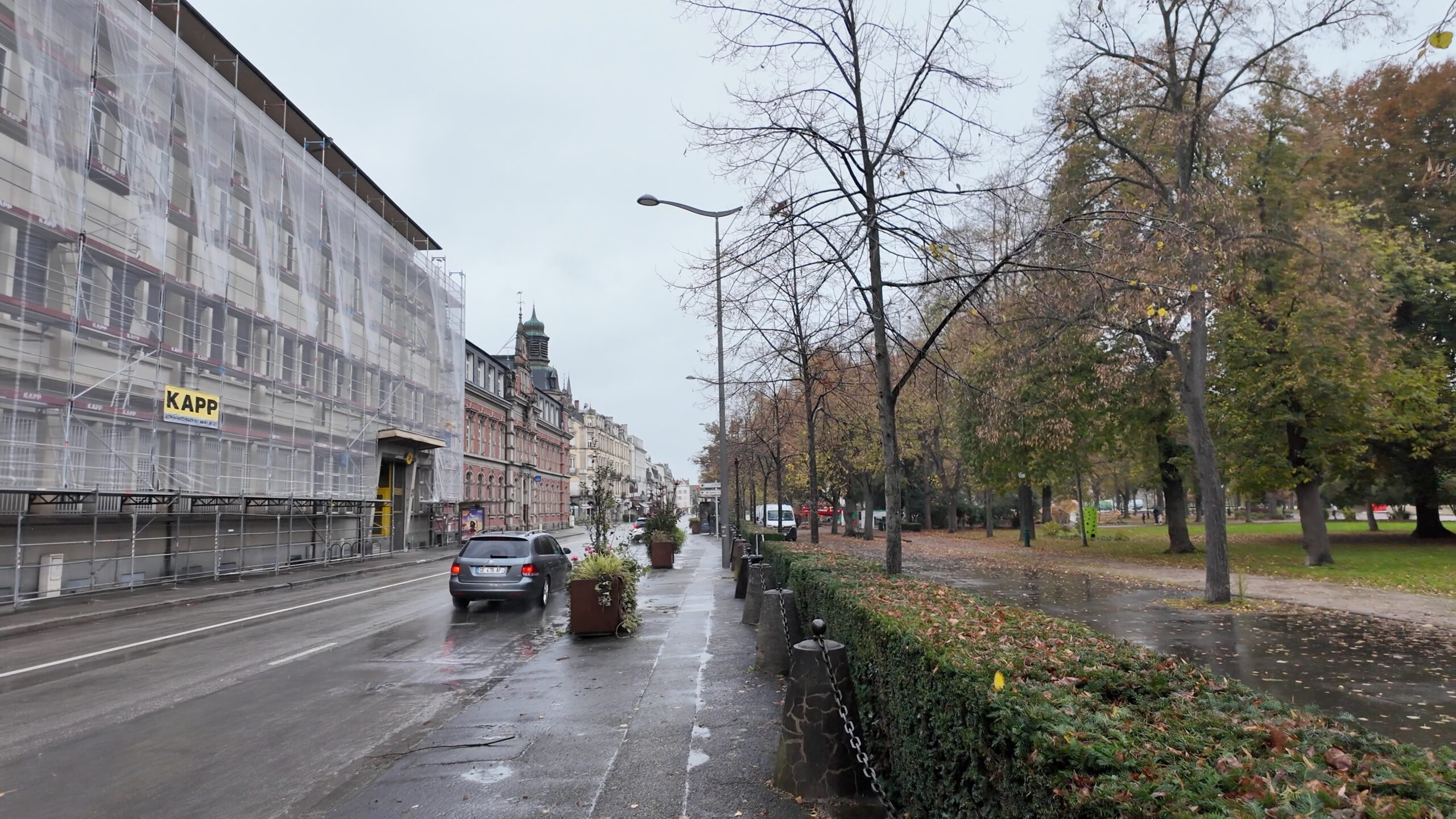 旧市街が観光スポットなのでそこまで歩きます。アプリだと15分少々という感じです。雨が降っているからなのか、この日は平日だからなのかは分かりませんが、歩いている人が少なく、大丈夫なのかなという感じで、Google Map見ながら目的地を目指していました。この辺りでは歩いている人自体が少ないので、アジア人すら見かけない感じです。