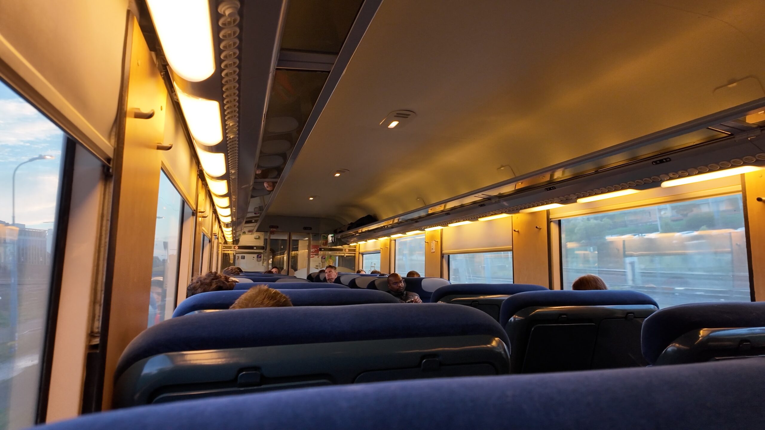 夕方の日差しを浴びながらストラスブールへ向かいます。良い感じで席が埋まっていました。
