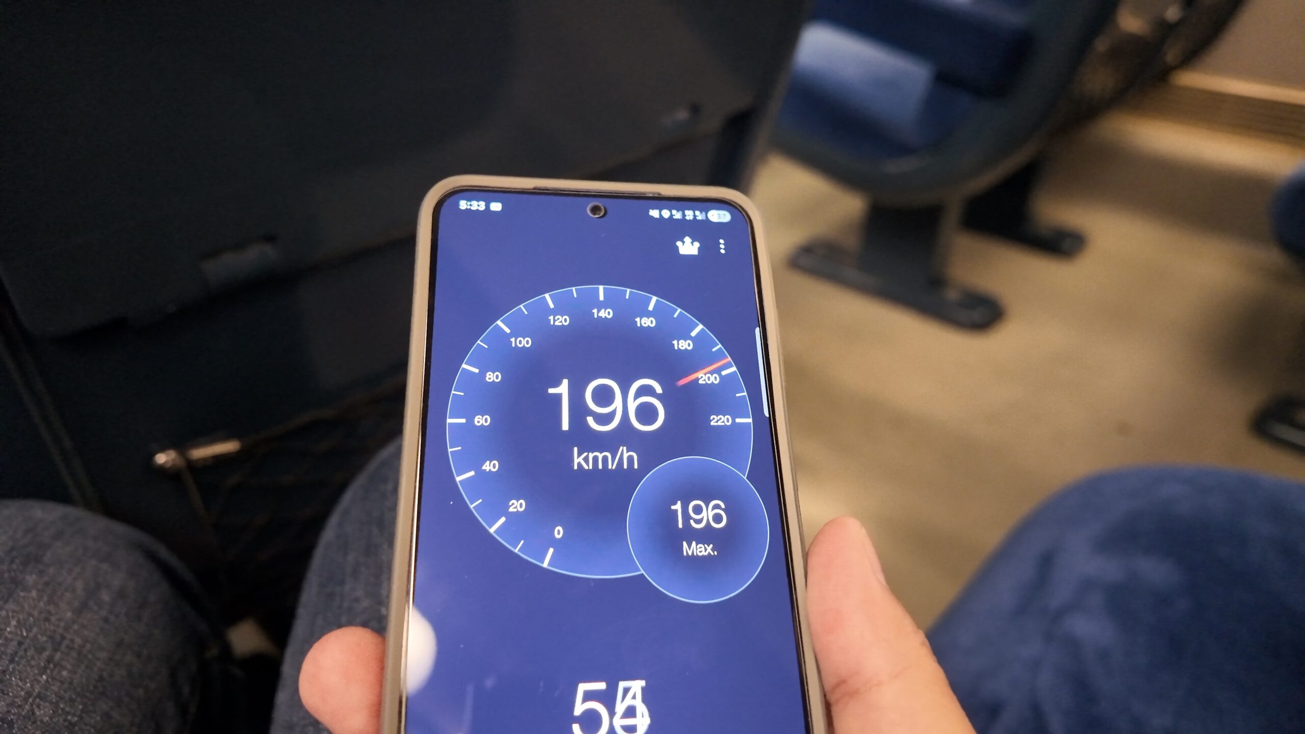 行きにも感じていたように、帰りもやけに速いなと思ってアプリで測定すると200キロ近いスピードが出ていました。乗車券のみで乗れる快速列車ですがスピードの速さにビックリです。踏切が殆どないので、このような速度が実現出来るのでしょうね。日本では新幹線以外では考えられません。速度は出ていましたが揺れも少なく静かだったので安心して景色を見る事が出来ました。